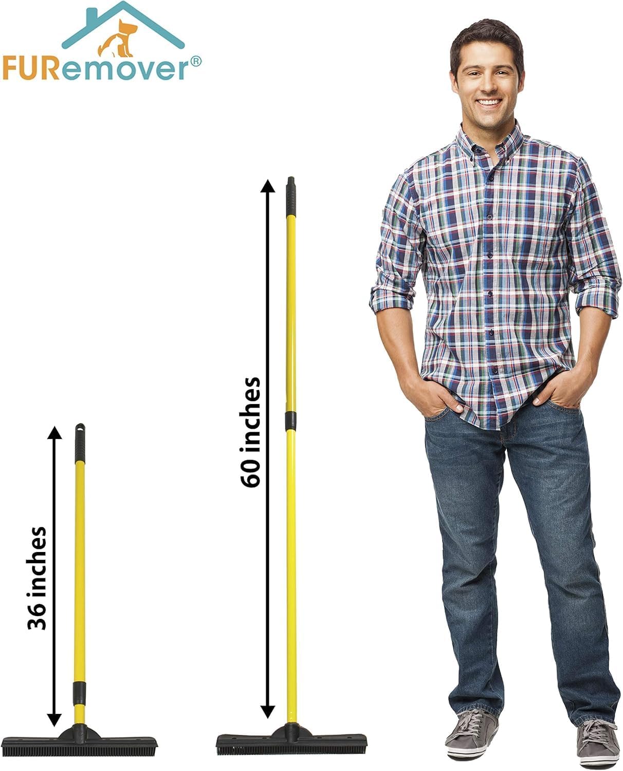 FURemover Original Pet Hair Rubber Broom with Squeegee, with 58” Telescopic Handle for Carpet, Tile and Hardwood and Handheld Lint Brush Combo
