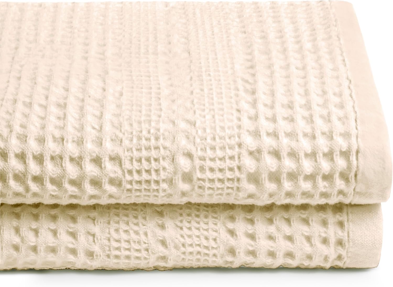 GILDEN TREE Waffle Towels for Bathroom, 100% Cotton Quick Dry Towel, Waffle Bath Towels Large, Absorbent Lightweight Travel Towel, Bath Towels Set of 2, Classic Style (Cream)