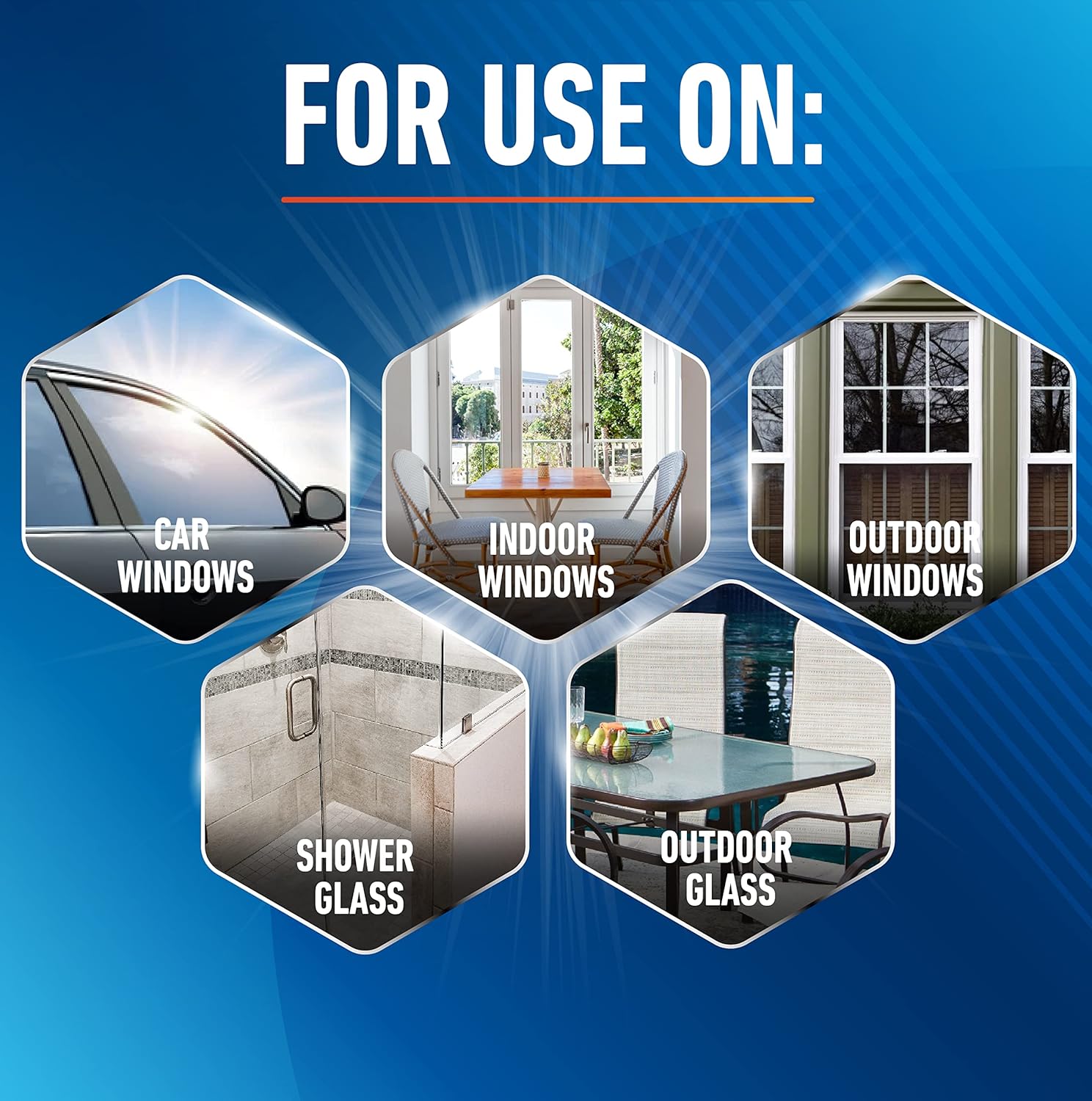 - MULTI-PURPOSE USE: Perfect for everyday household tasks, this glass cleaner works for windows, glass, shower doors, car windows and windshields, and mirrors. The ammonia-free formula also makes it safe on tinted windows and LOW-E glass.