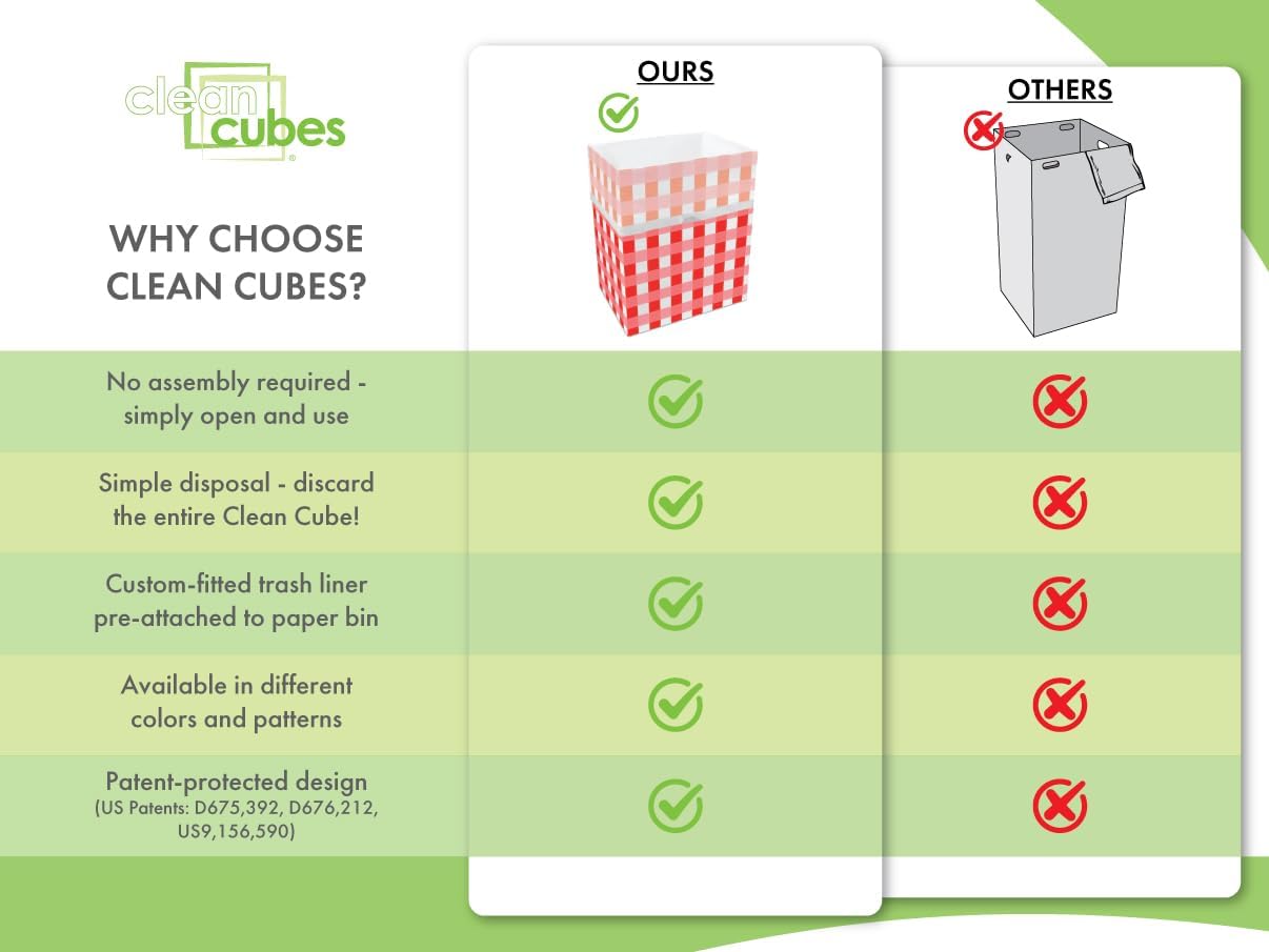 - ✅ 【EFFORTLESS CLEANUP & DISPOSAL】Simply unfold, use, and toss — keep your event clean and mess-free without extra effort. Clean Cubes are disposable recycling bins and trash cans with a patent-protected design and custom-fitted trash liner in each bin.