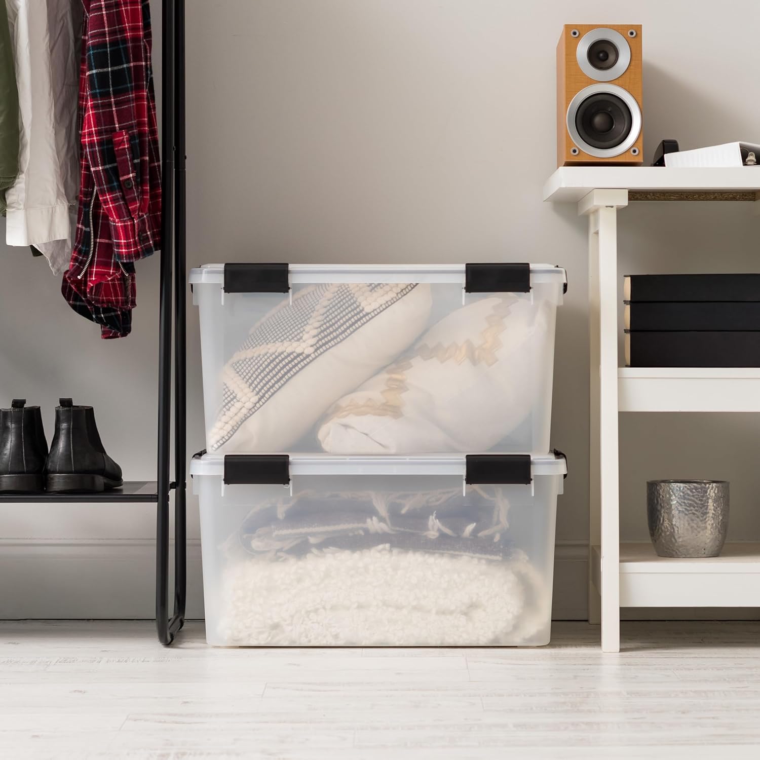 IRIS USA 110559 62.8 Quart Weathertight Plastic Storage Box, Clear (4 Pack)