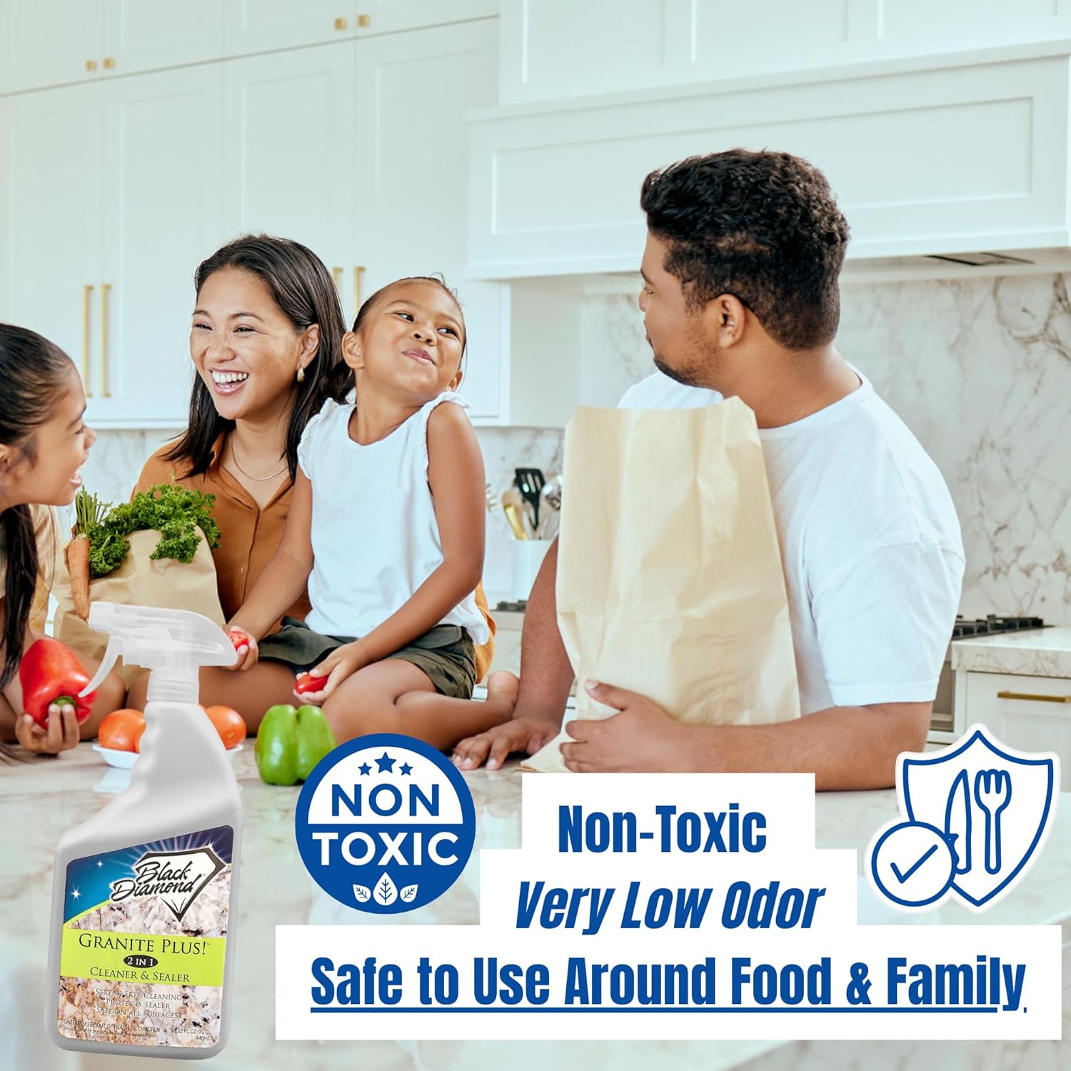 - 2-in-1 cleaner and sealer – Daily use formula cleans and protects granite, marble, quartz, travertine, and more.