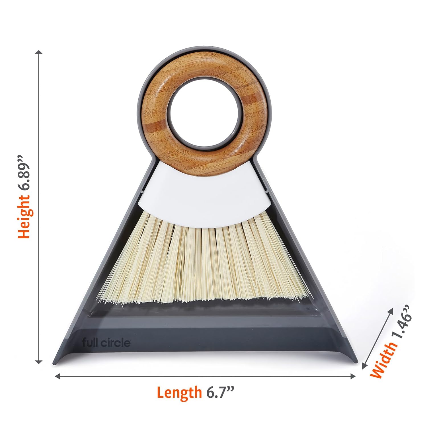 Full Circle Tiny Team Mini Compact Brush & Dustpan Set, Portable Handheld Broom for Quick Cleanups, Ideal for Home, Bathroom, Kitchen Countertops. Bamboo Hand Broom & Small Crumb Sweeper, White
