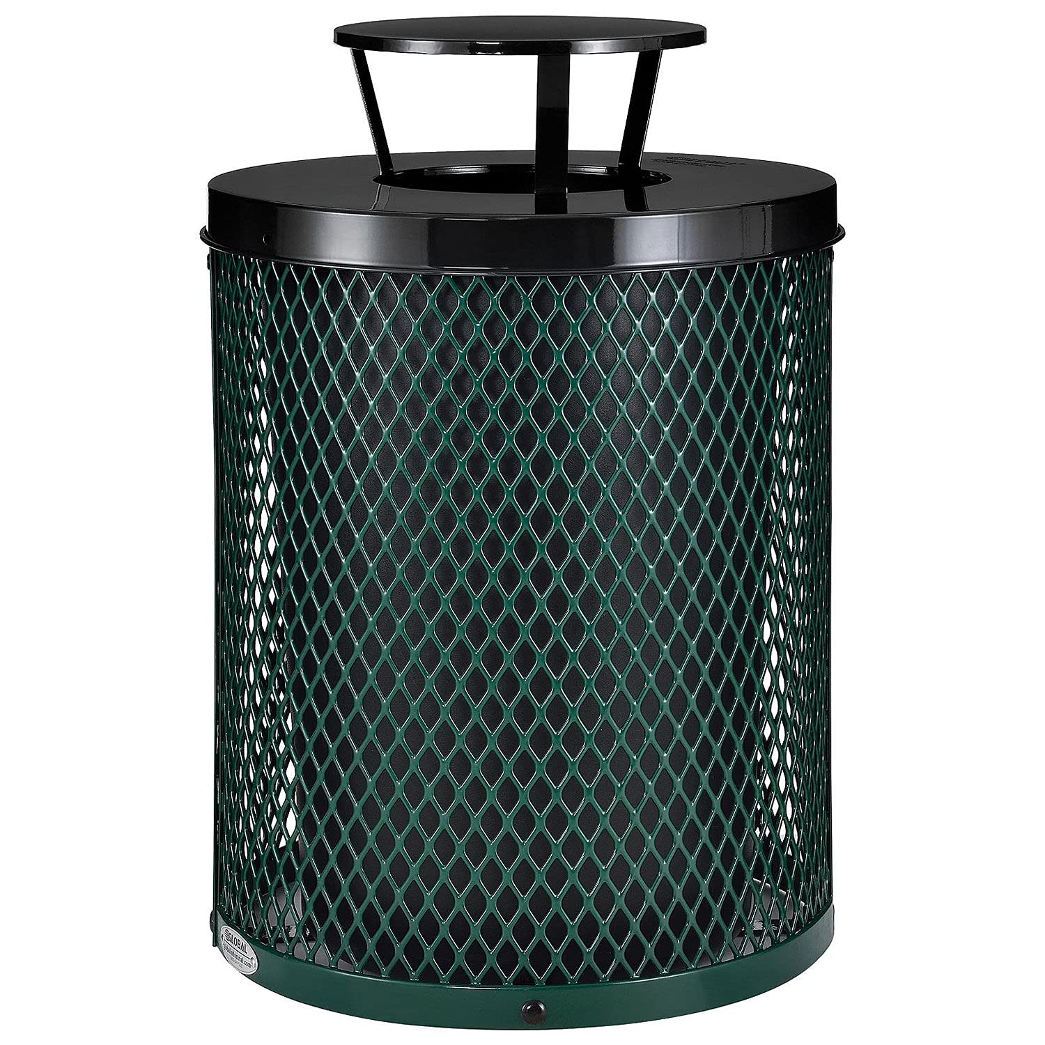 - Outdoor Diamond-Steel Trash Can with Rain Bonnet gives you high capacity for rubbish with design and construction details that provide resistance to the elements, graffiti, and vandalism