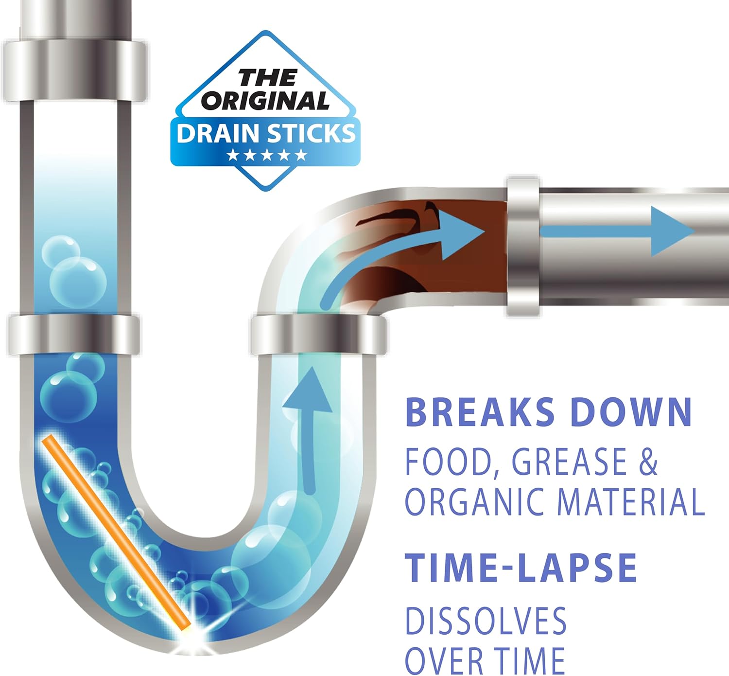 - KEEP WATER FLOWING STRONG & DRAINS ODOR-FREE: Save time and money by avoiding extra plumber visits with this effective drain-cleaner odor eliminator. Instead of wrangling with drain snakes, simply insert 1 stick a month into each of your drains to prevent water buildup and keep your drains smelling fresh.