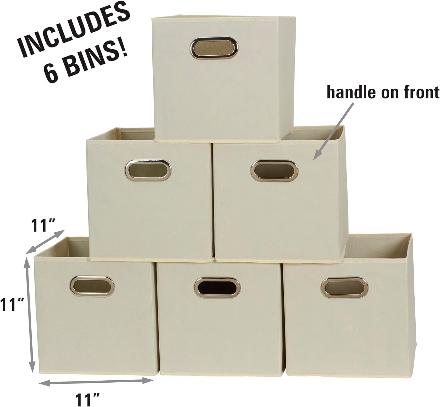 Household Essentials 82-1 Foldable Fabric Storage Bins | Set of 6 Cubby Cubes with Handles | Natural