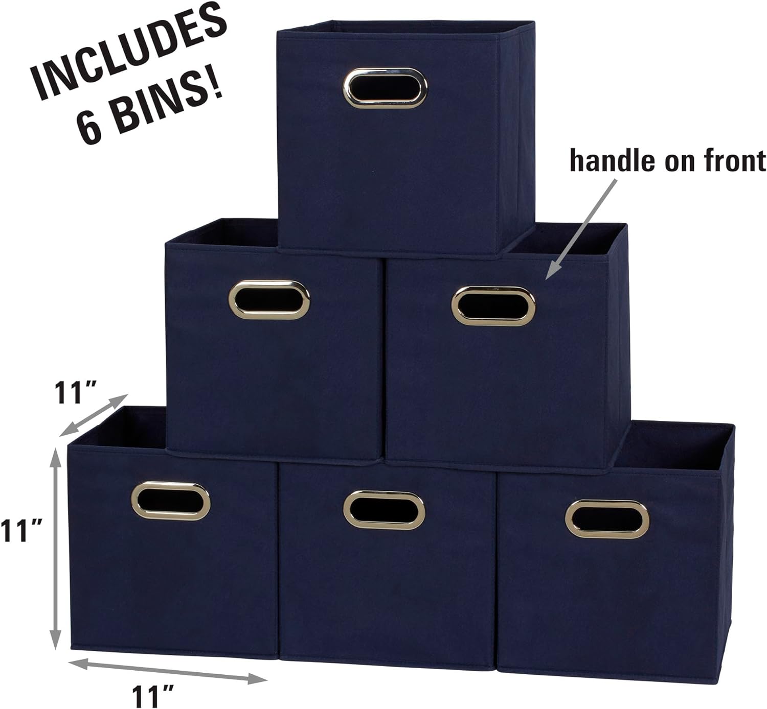 Household Essentials 81-1 Foldable Fabric Storage Bins | Set of 6 Cubby Cubes with Handles | Navy Blue, 6 lbs