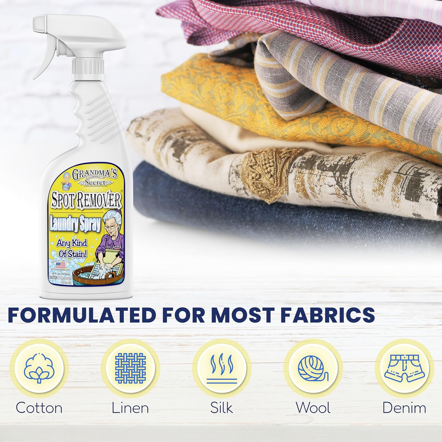 Grandma's Secret Spot Remover Laundry Spray - Chlorine, Bleach and Toxin-Free Fabric Stain Remover for Clothes - Removes Oil, Paint, Blood and Pet Stains - 16 Oz, 2 Pack