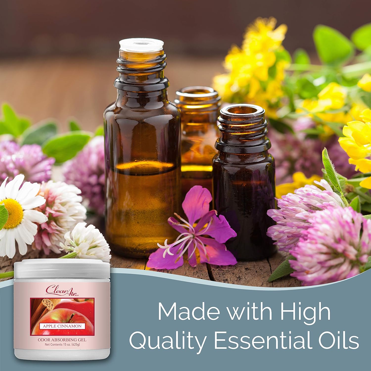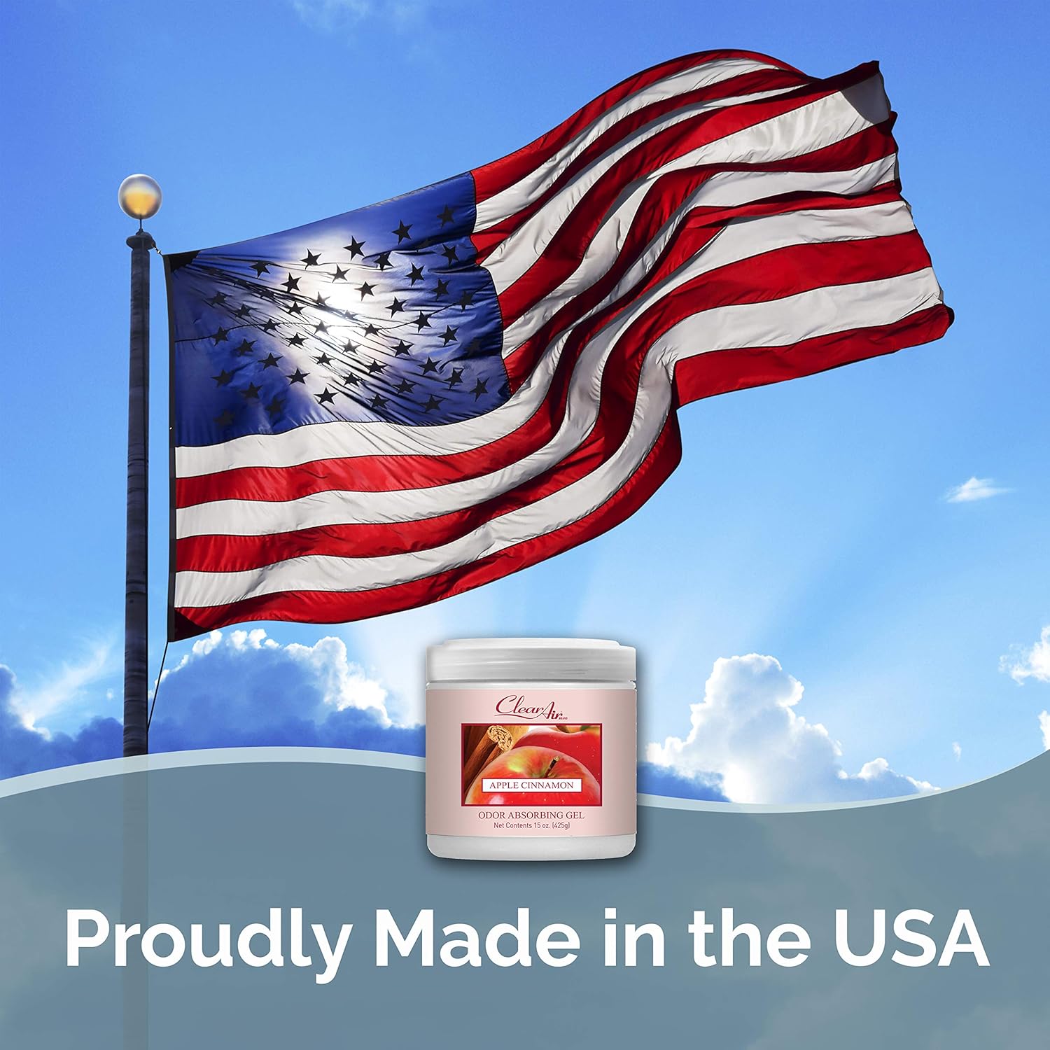 Clear Air Odor Absorber Gel - 15 oz, Pack of 2 - Air Freshener Absorbs and Eliminates Odors in Bathrooms, Cars, Boats, RVs and Pet Areas - Made with Essential Oils - Apple Cinnamon Scent