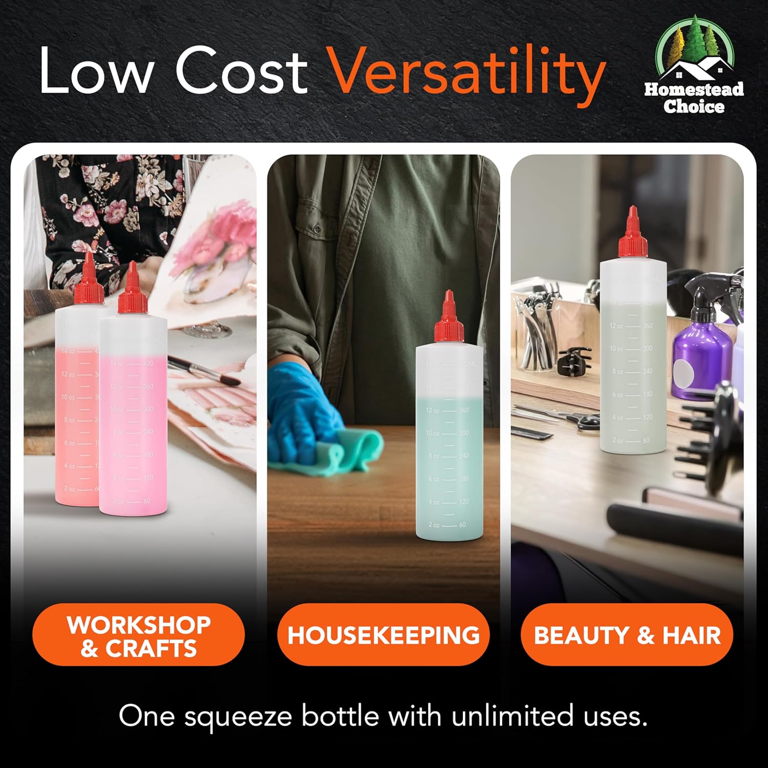 - Multi-Purpose and Easy to Usd- Whether you intend to use the bottles in the kitchen - oil, vinegar, icing, and other condiments; in the garage - lubricants, paint thinners and cleaning liquids; for arts and crafts - glue, paint, dye, and ink, or for whichever liquids you have in mind, these versatile squeeze bottles come in handy