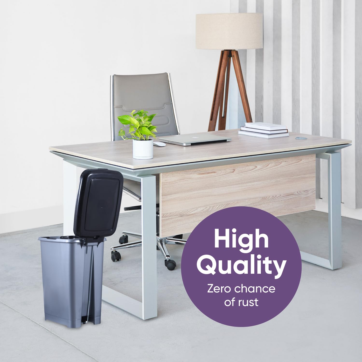 - ZERO CHANCE OF RUST AND EASY TO CLEAN – Unlike stainless steel trash cans, our trash can is made of plastic that is easy to rinse and will not rust. Also, a nice choice for office settings because it has no exposed metal parts that might scratch or dent. With a slim design and a durable plastic construction, this trash can will keep your area clean, tidy, and sanitary.