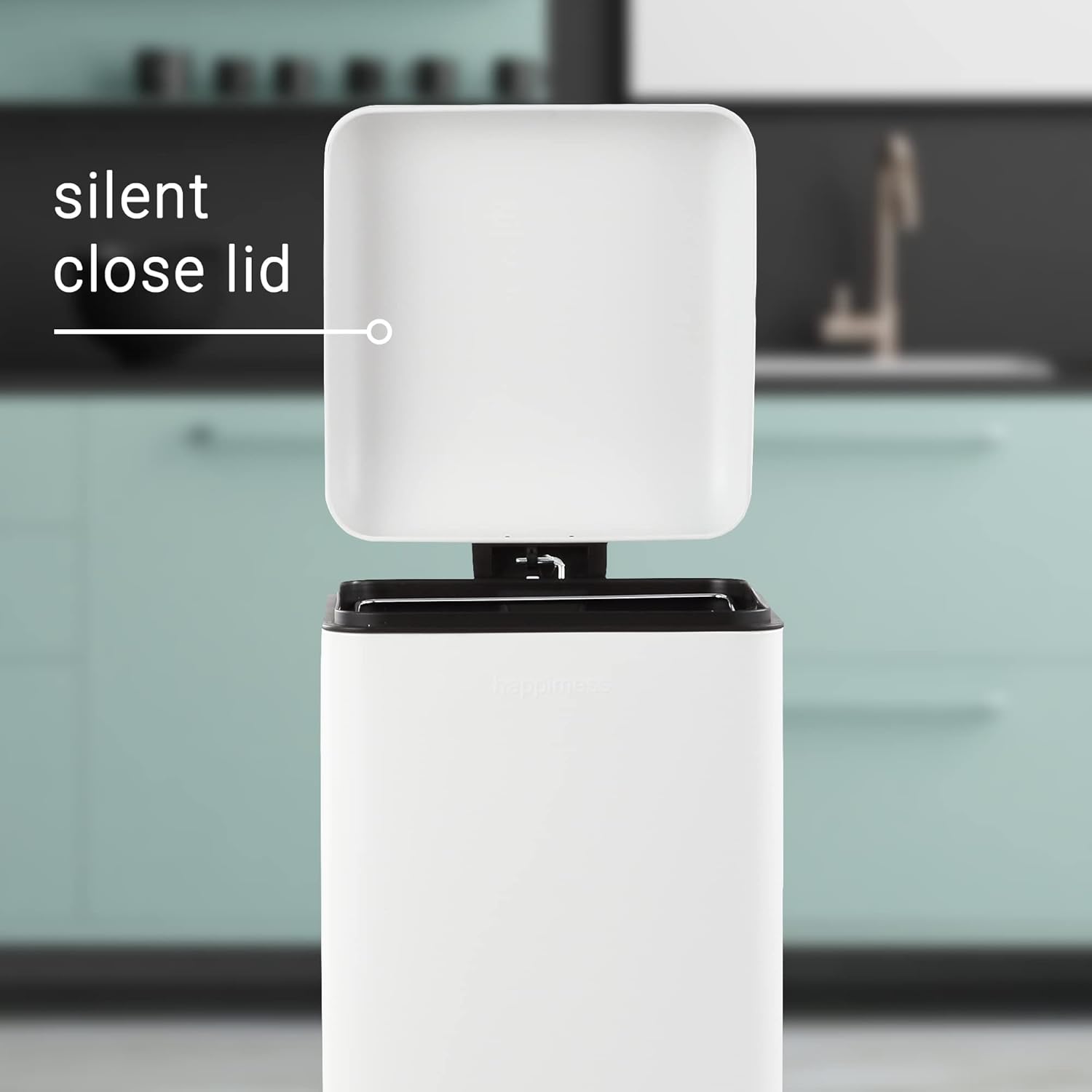 - STYLISH & PRACTICAL DESIGN: happimess Trash Cans clean-lined designs blend beautifully into your existing decor; Dispose of trash hands-free with our convenient step pedal; built-in damper lowers the lid quietly, and closes it tightly to keep odors inside