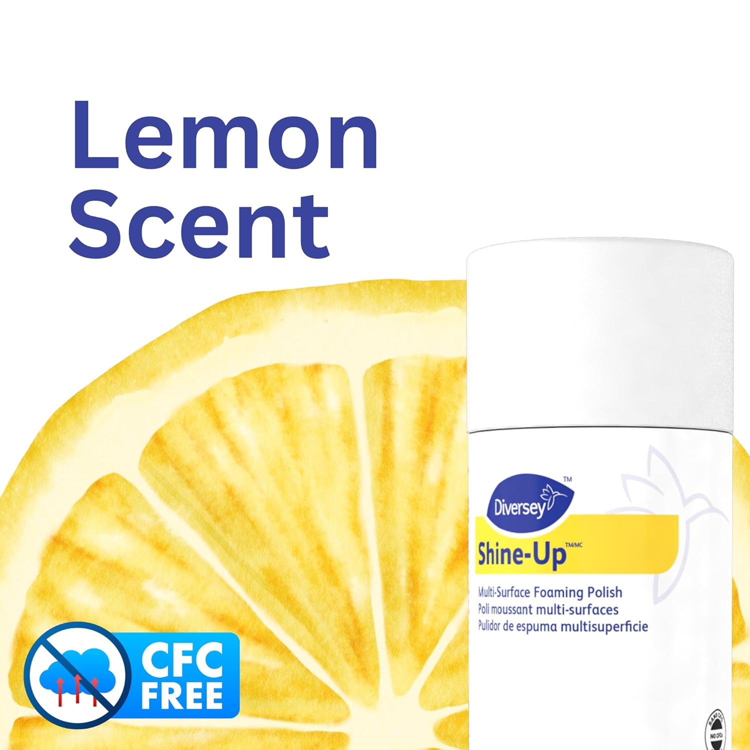 Diversey 904390 Shine-Up Multi-Surface Foaming Polish, Use to Clean Furniture, Vinyl, Stainless Steel, Lemon Scent, Aerosol, 15-Ounce (Pack of 12)