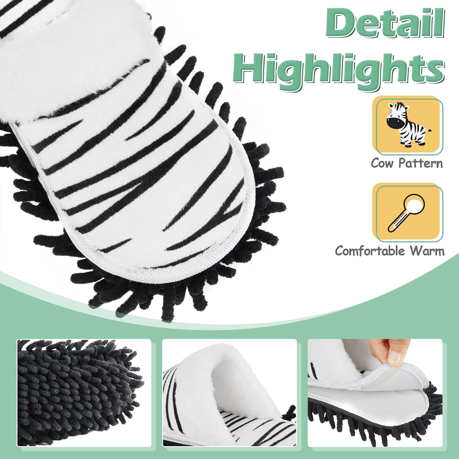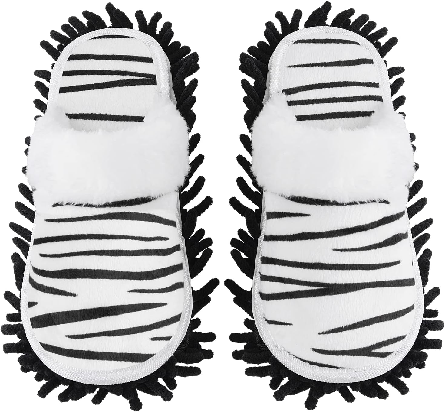 Microfiber Floor Mop Slippers House Dust Cleaning Tool Detachable Washable Shoes for Kitchen House Cleaning (Women 7-10/Men 5-8, Zebra pattern)