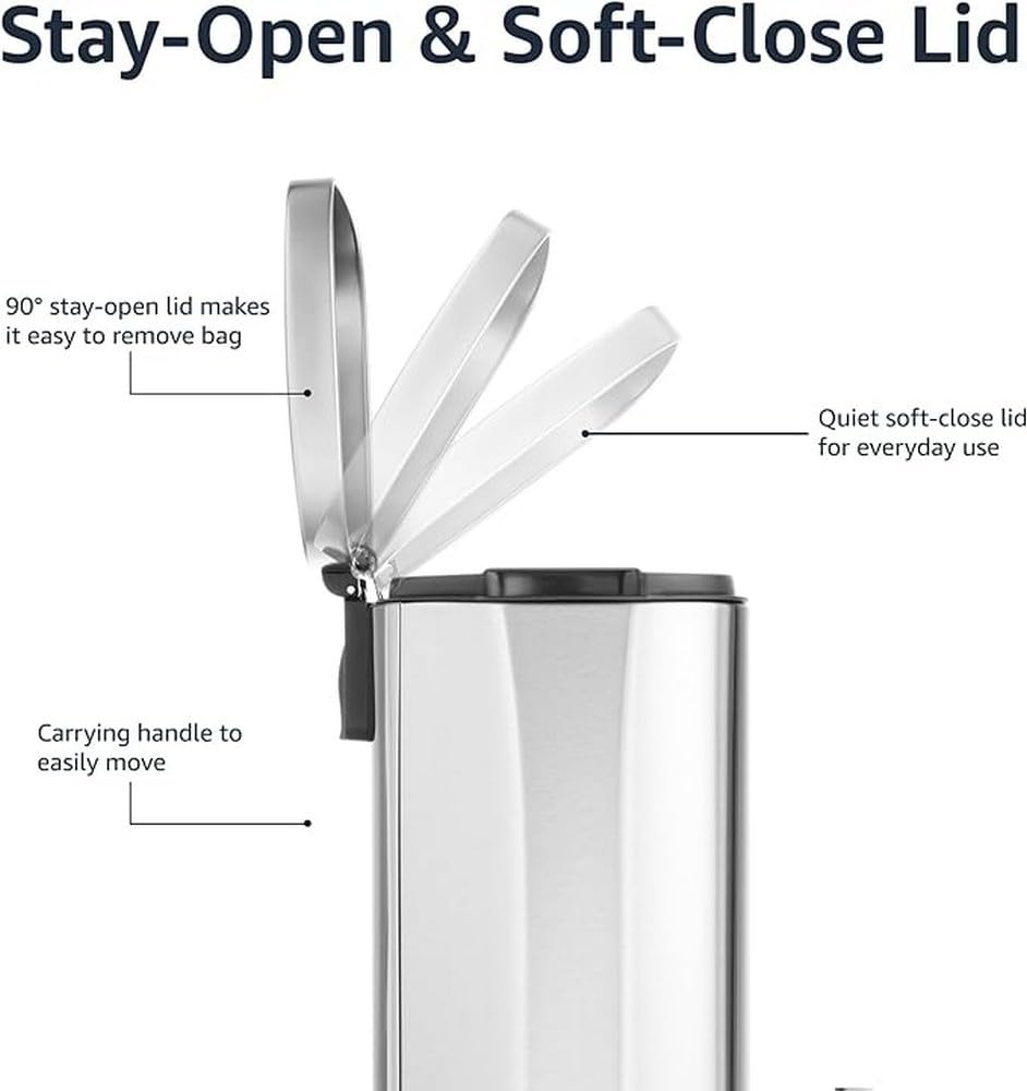 - EVERYDAY USE: Stay-open lid, removable bucket, and carry handle ensure easy, convenient trash disposal
