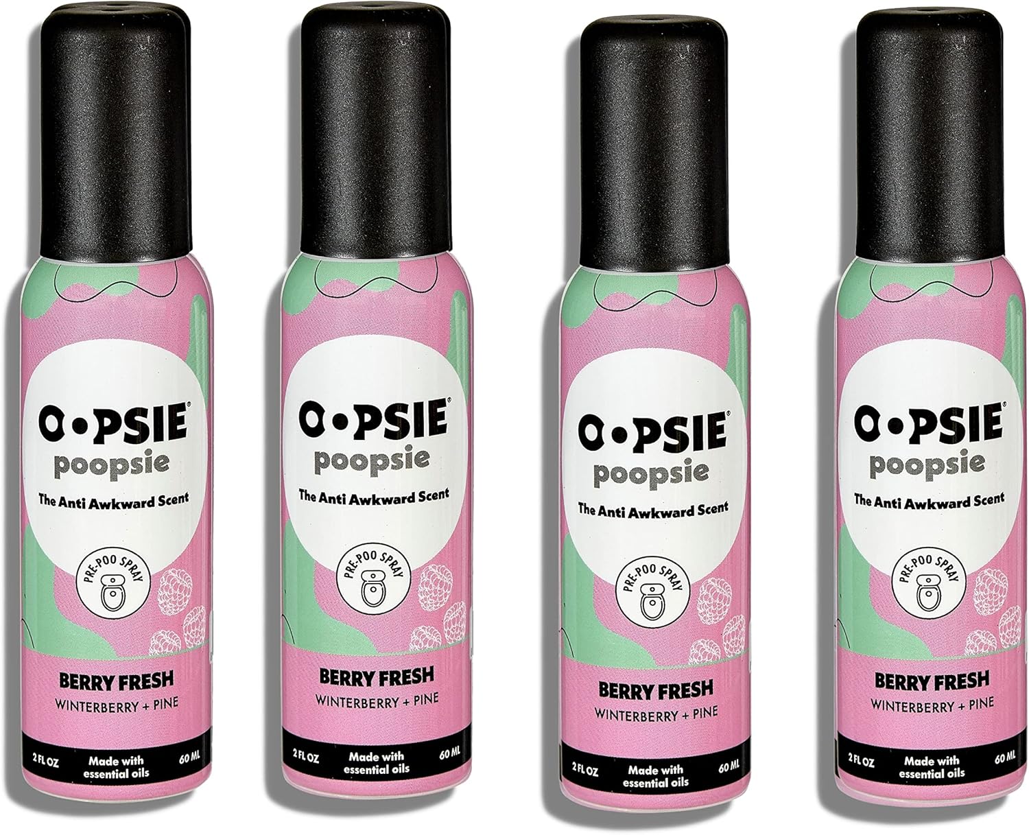 OOPSIE POOPSIE - Berry Fresh Before & After You Go Toilet Spray 2oz - Portable Odor Eliminator - 4 Pack