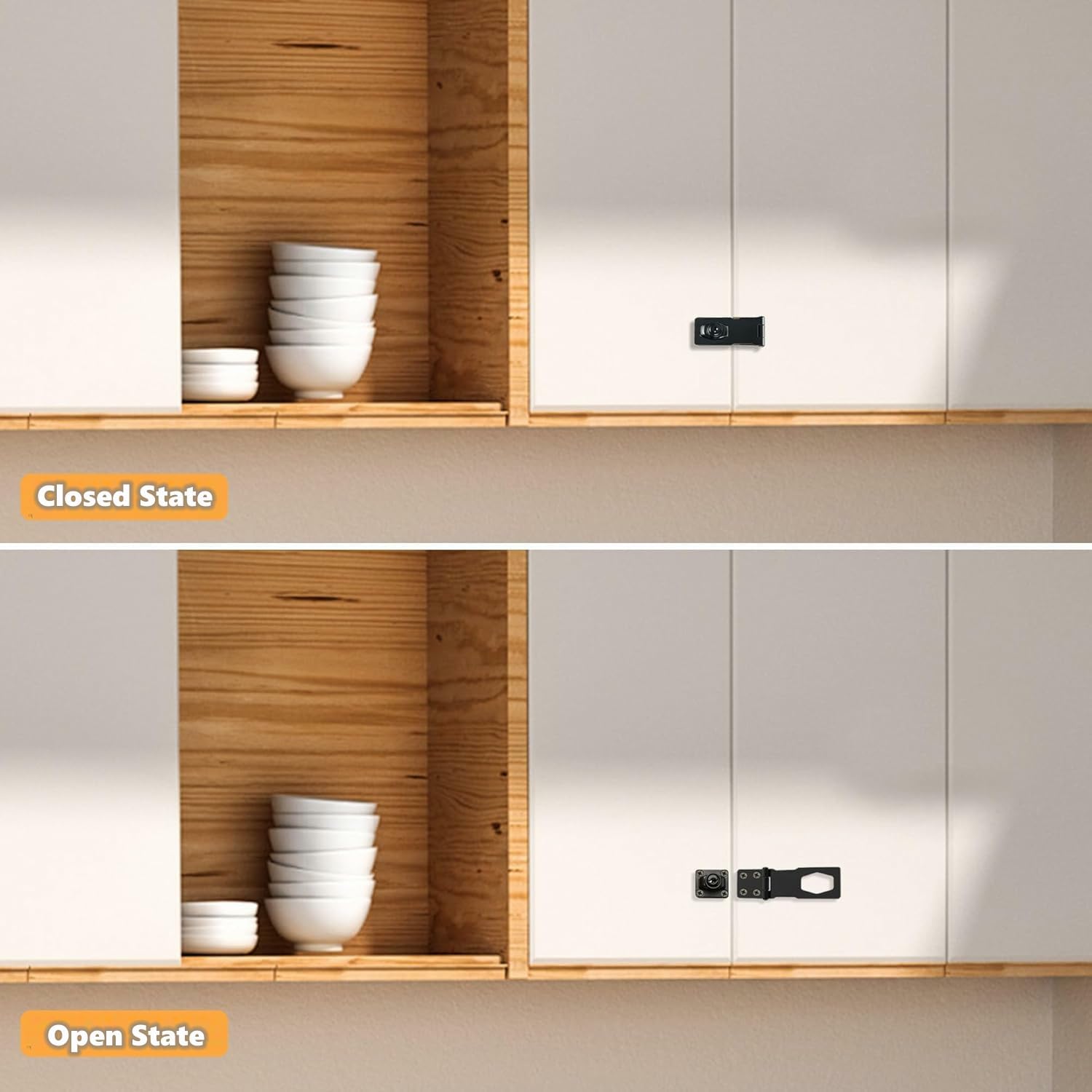 - 【Wide Applications】The locking hasp is suitable for installation in the place where you need to lock protect your house, property, and personal privacy. Such as all kinds of door, window, cabinet, drawer, furniture, pet cage, closets, cupboards, storage containers, sheds, storage bins, garage doors, tool boxes,sliding doors, wardrobes, fence,and etc.