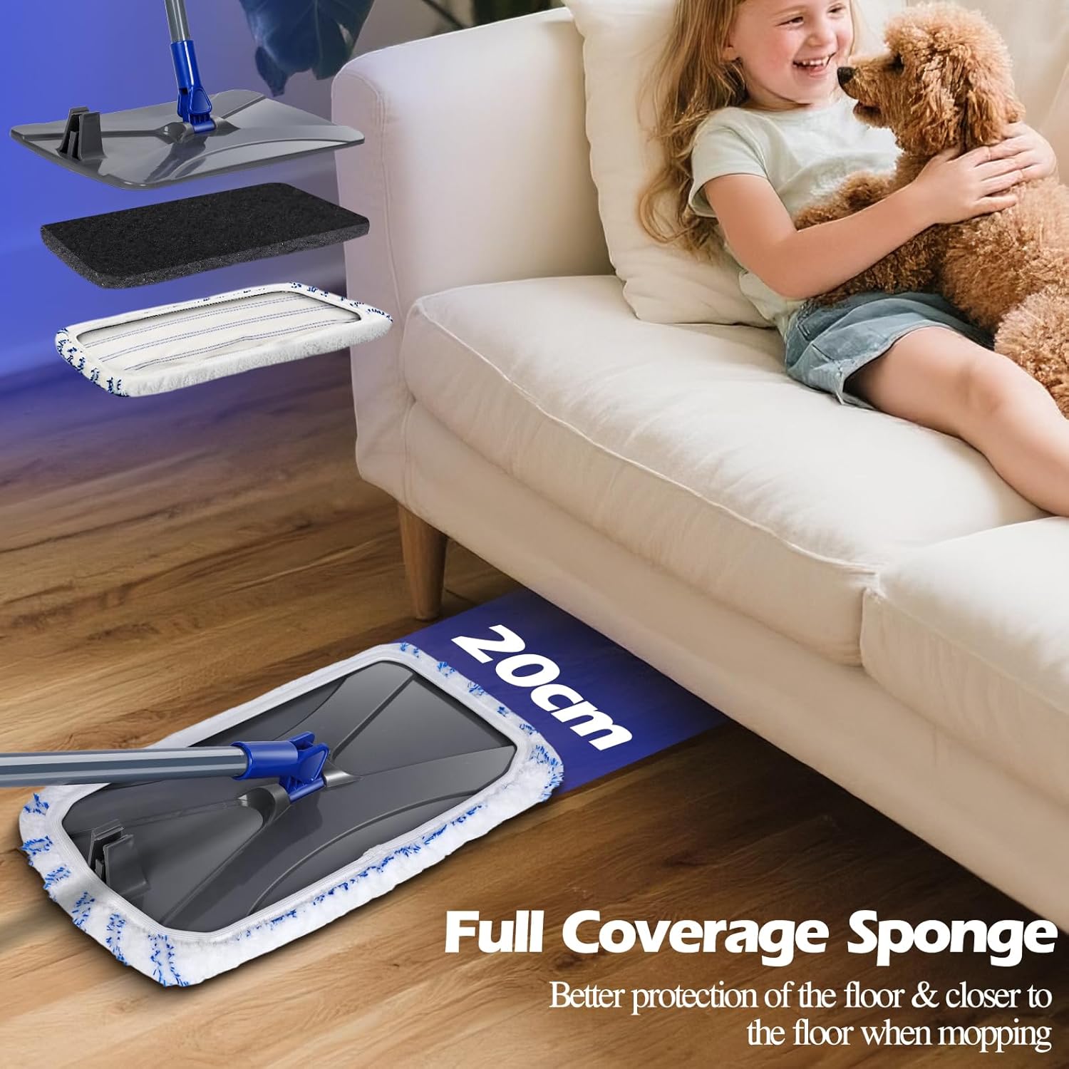 - 360° Rotation:The dust mop head can rotate 360° to reach any gaps and deep corners under furniture with ease. An extra scraper can help you clean dirt stuck on the microfibre mop pad.Search ASIN B07YCF3ZWN for replacement pads.