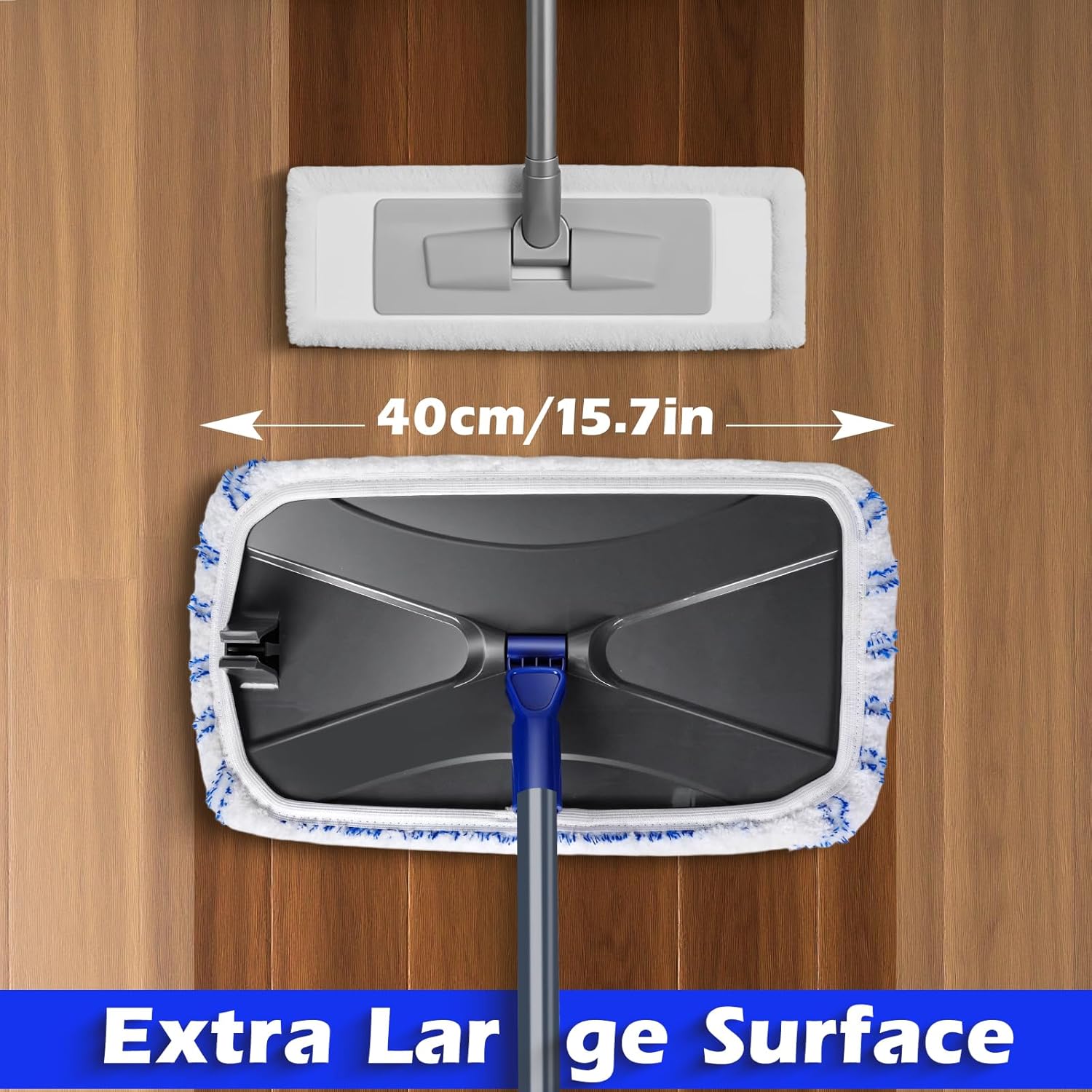 - More Larger Mop Head: Our microfiber mop pad is suitable for large area cleaning. The size of the mop head is 16''x 8.4''. Save at least half the cleaning time.