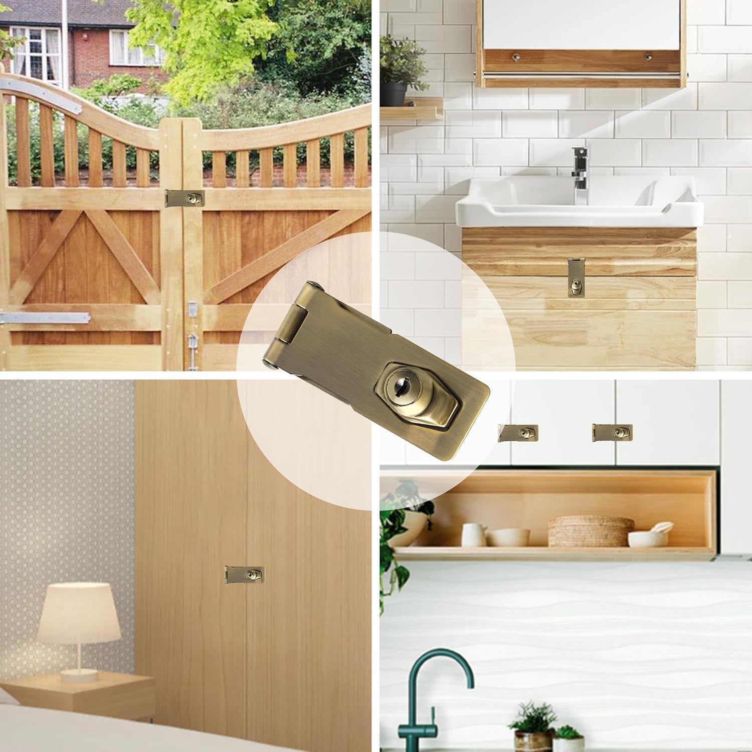 - 【Wide Applications】The locking hasp is suitable for installation in the place where you need to lock protect your house, property, and personal privacy. Such as all kinds of door, window, cabinet, drawer, furniture, pet cage, closets, cupboards, storage containers, sheds, storage bins, garage doors, tool boxes,sliding doors, wardrobes, fence,and etc.
