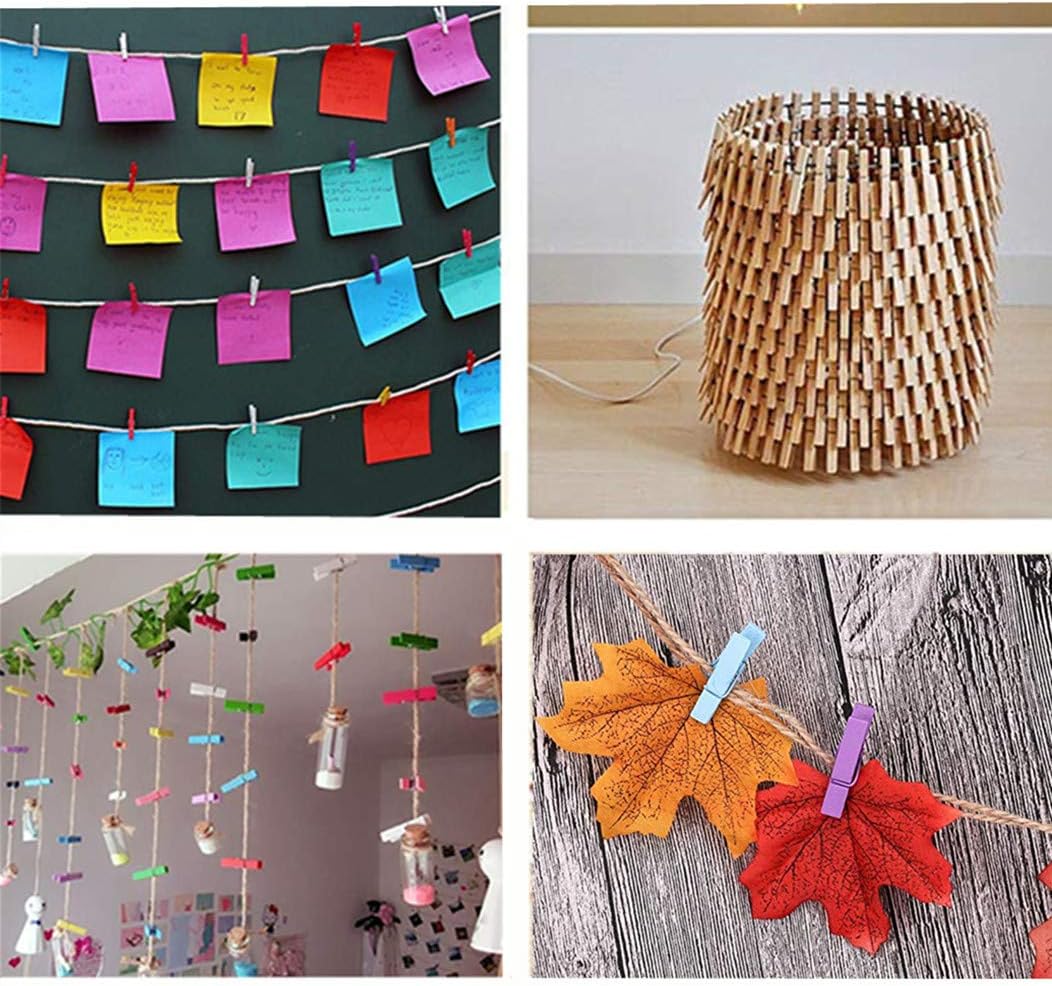 - Tiny Wood Clothes Pin Set: 50 PCS Yellow Clothespins and 10 Meters (33feet) Jute Twines
