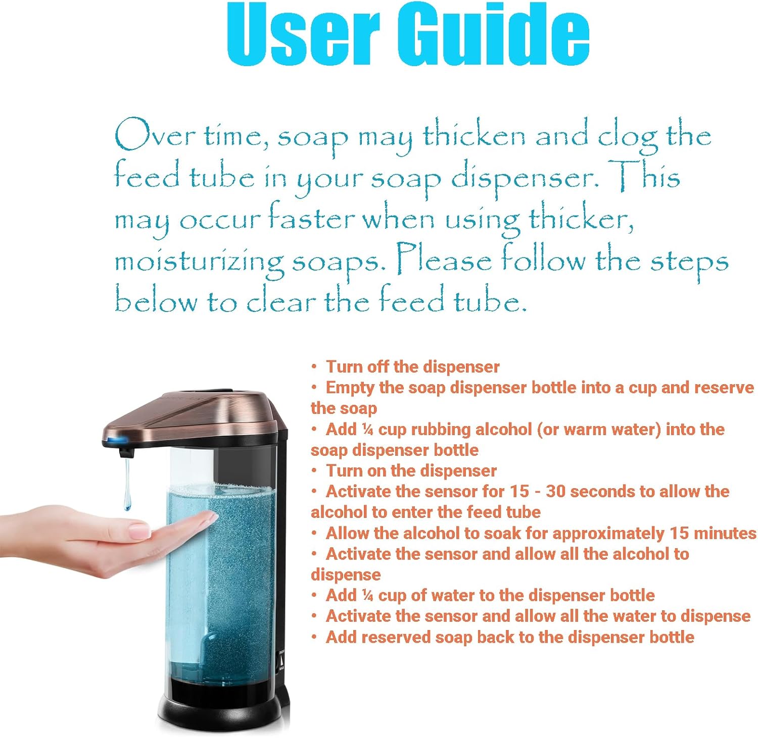 - Do not use thick or lotion-based soap, which may cause clogging or dispensing failure