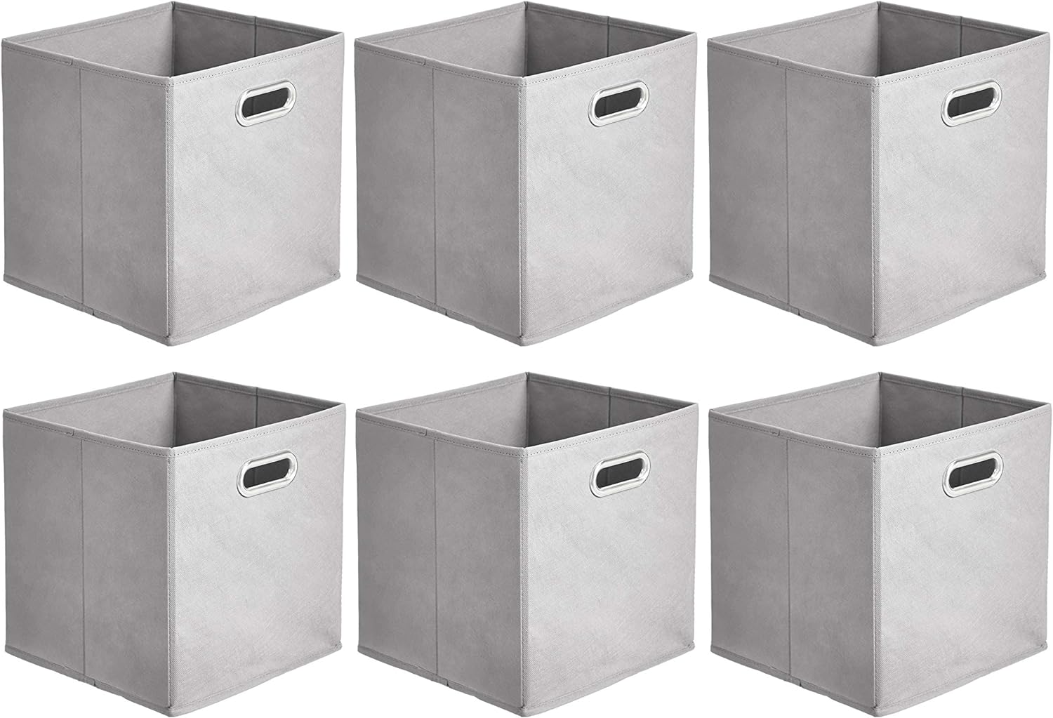 Amazon Basics Collapsible Cube Storage Organizer Bins, 6-Pack, 10.5 x 10.5 x 11 inches, Light Grey