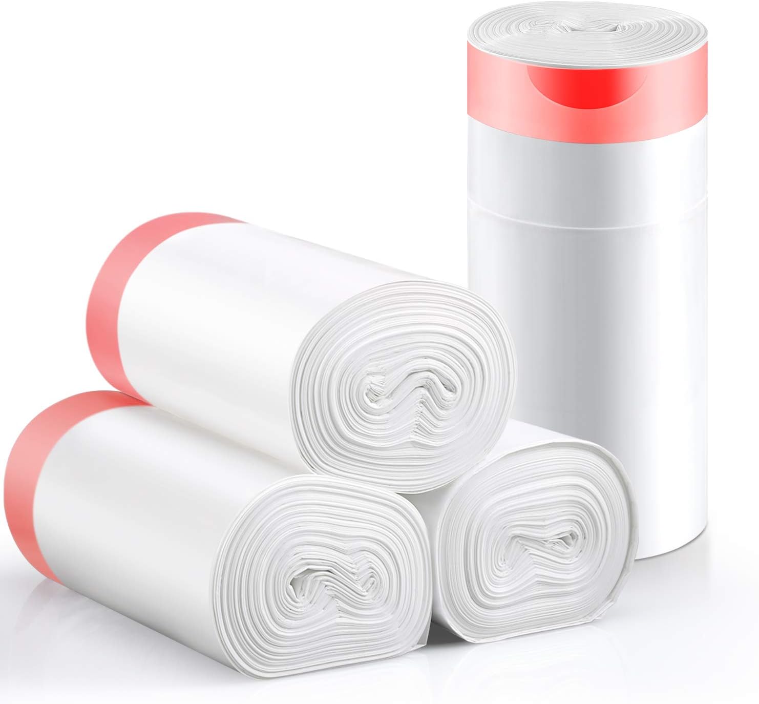 - HEAVY DUTY DRAWSTRING DESIGN: Our strong drawstring handles are easy to lift the trash, tie the bag off and carry it to the trash can without breaking or tearing. The garbage will never kiss your hands again