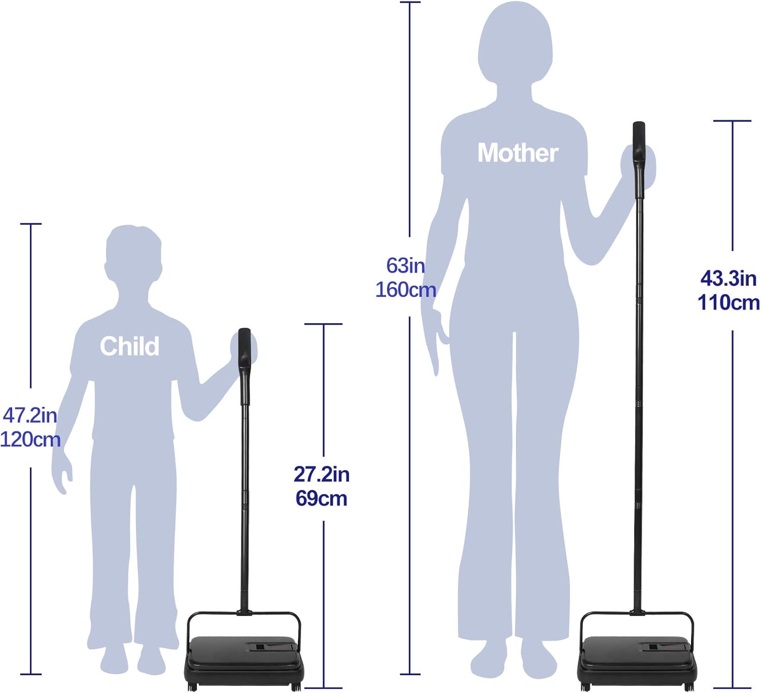 - 【Easy to Use】Carpet sweeper has rotating brush rolls that pick up large and small debris on forward and return passes. Hair will get stuck in the roller, need to be cleaned regularly. Empty the sweeper trash storage box with 1-touch.