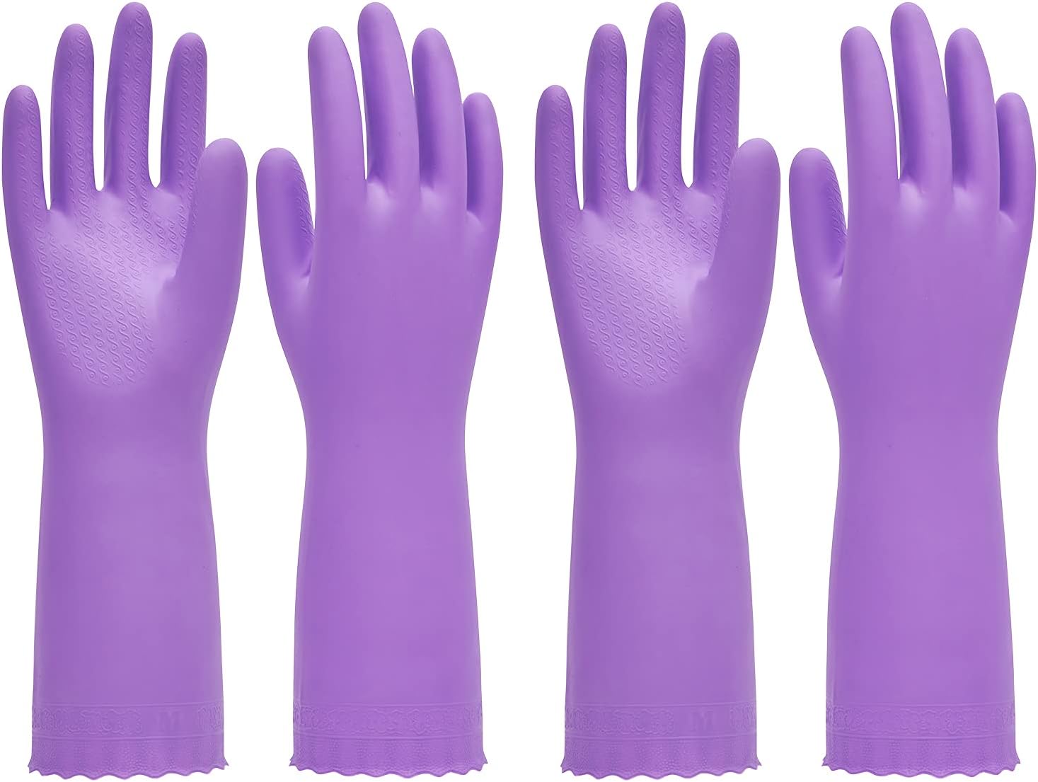 PACIFIC PPE 2 Pairs Reusable Dishwashing Cleaning Gloves with Latex Free, Cotton Lining, Kitchen Gloves, Purple, Medium