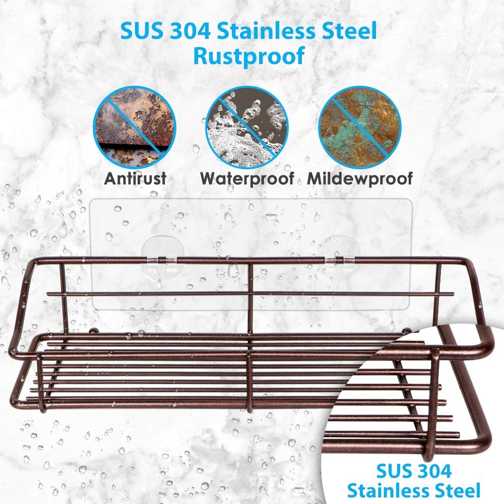 Nieifi Shower Caddy Shelf with Hooks Storage Rack Organizer Adhesive Stainless Steel without Drilling for Bathroom, Lavatory, Washroom, Restroom, Shower, Toilet, Kitchen (Brown, 3 Pack)