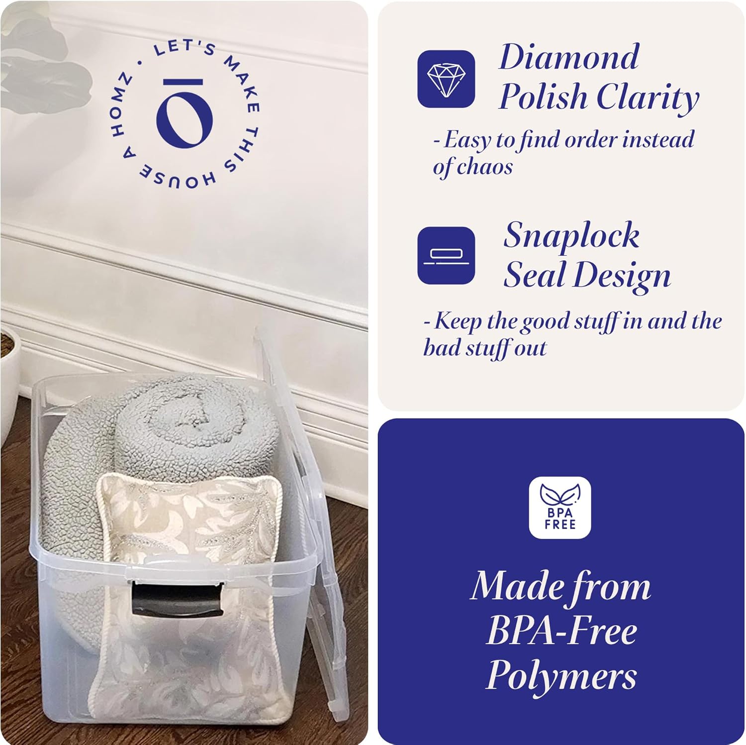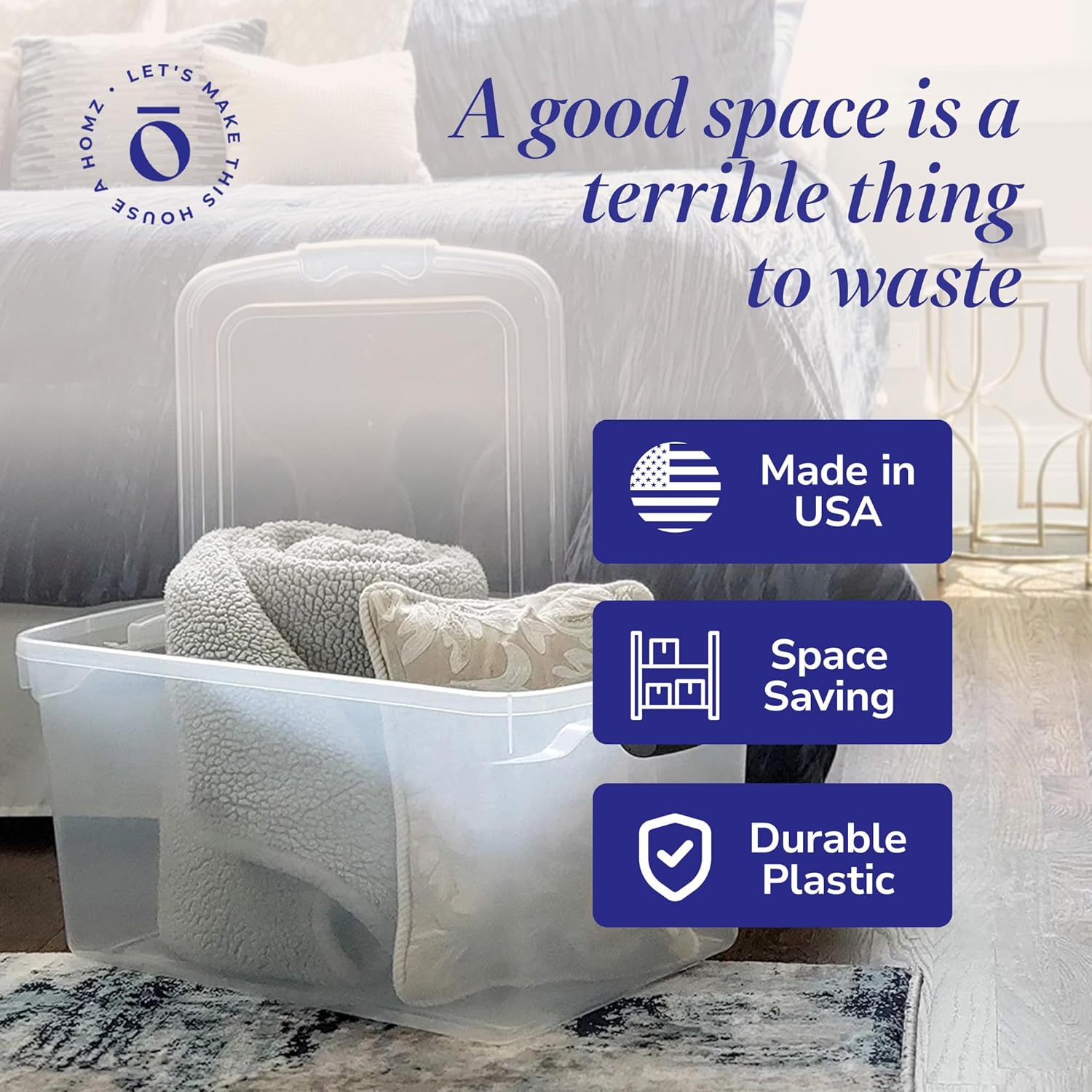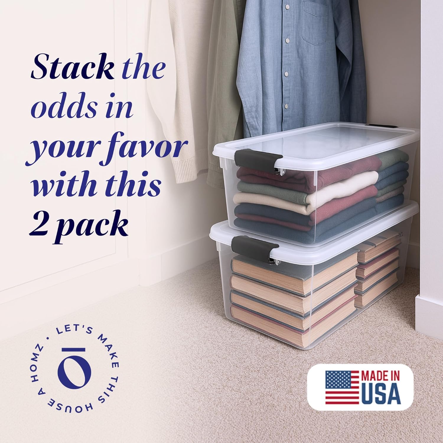 HOMZ 2-Pack Latching Lid, Large Clear Plastic Storage Bins with Lids, 66 Quart, Gray Latch - Stackable Container Boxes for Home, Bathroom, and Office Organization