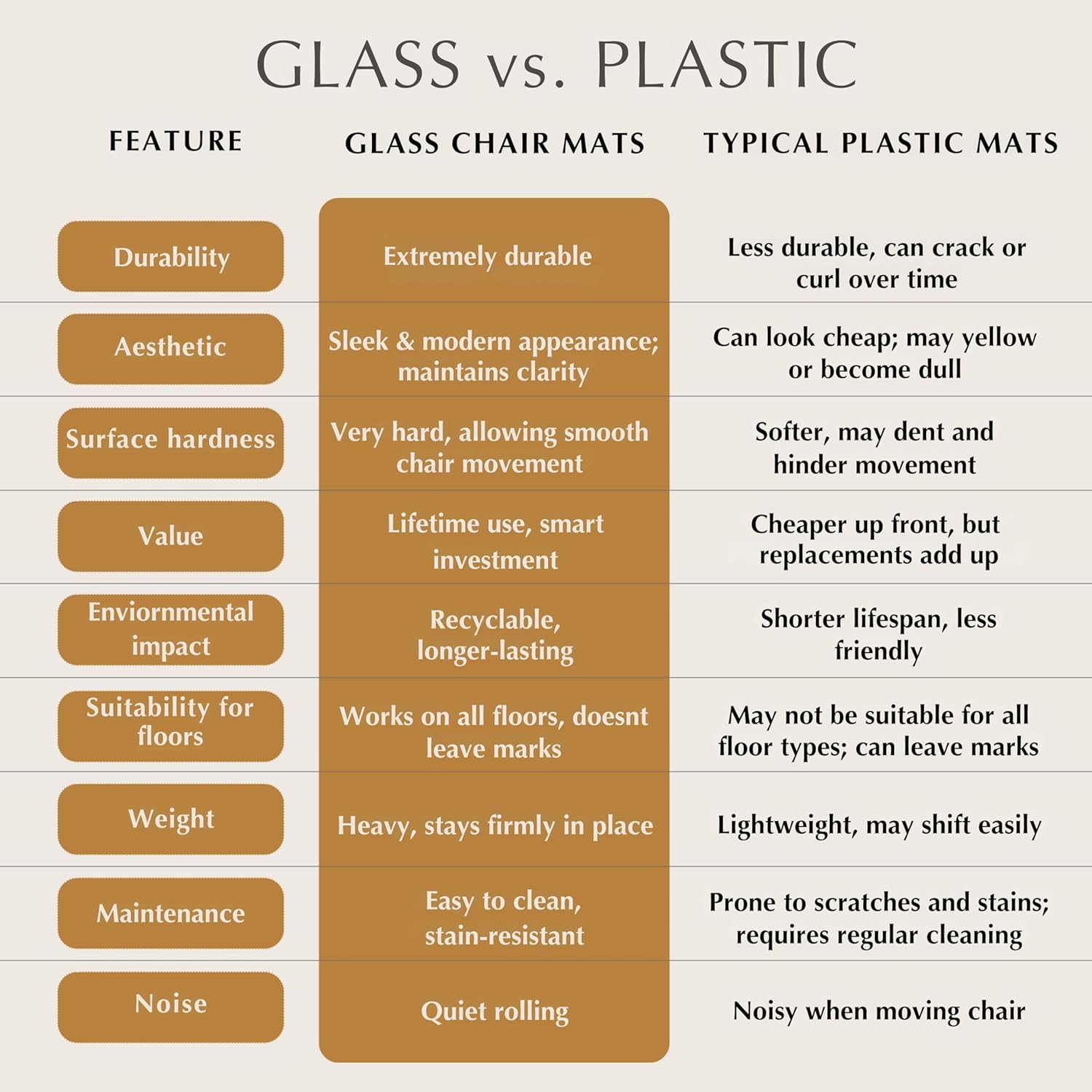 - ๐ฆ๐ง๐ฌ๐๐๐ฆ๐ ๐ฃ๐ฅ๐ข๐ง๐๐๐ง๐๐ข๐ก - Stylish tempered glass chair mat with a maximum capacity of up to 1000 pounds ensures that your floors will be protected from scuffs and damage typically caused by hard plastic rolling office chair wheels. This elegant ergonomic tempered glass mat can work on carpet with ease or over hard floors such as tile, wood, and vinyl flooring.