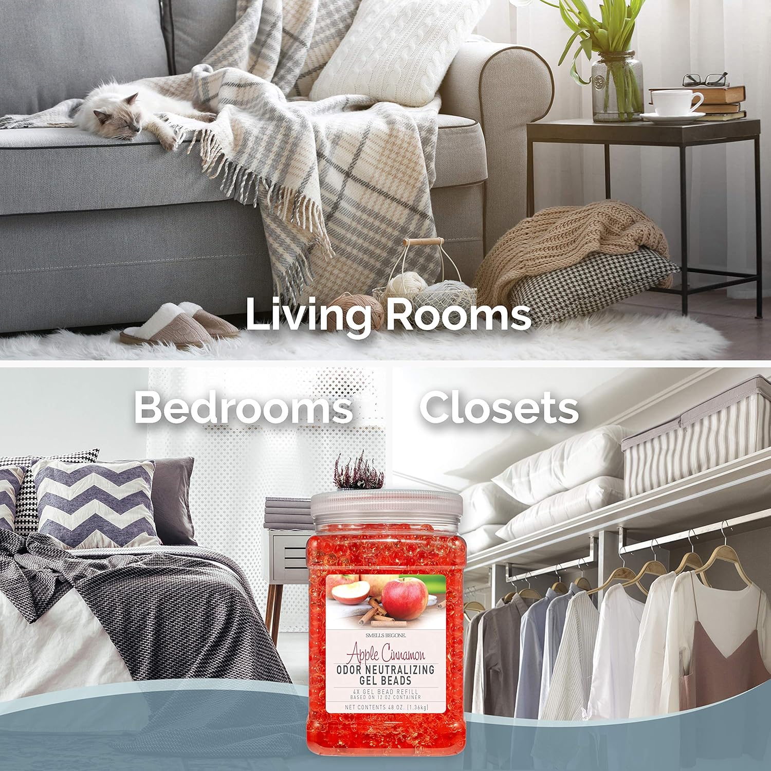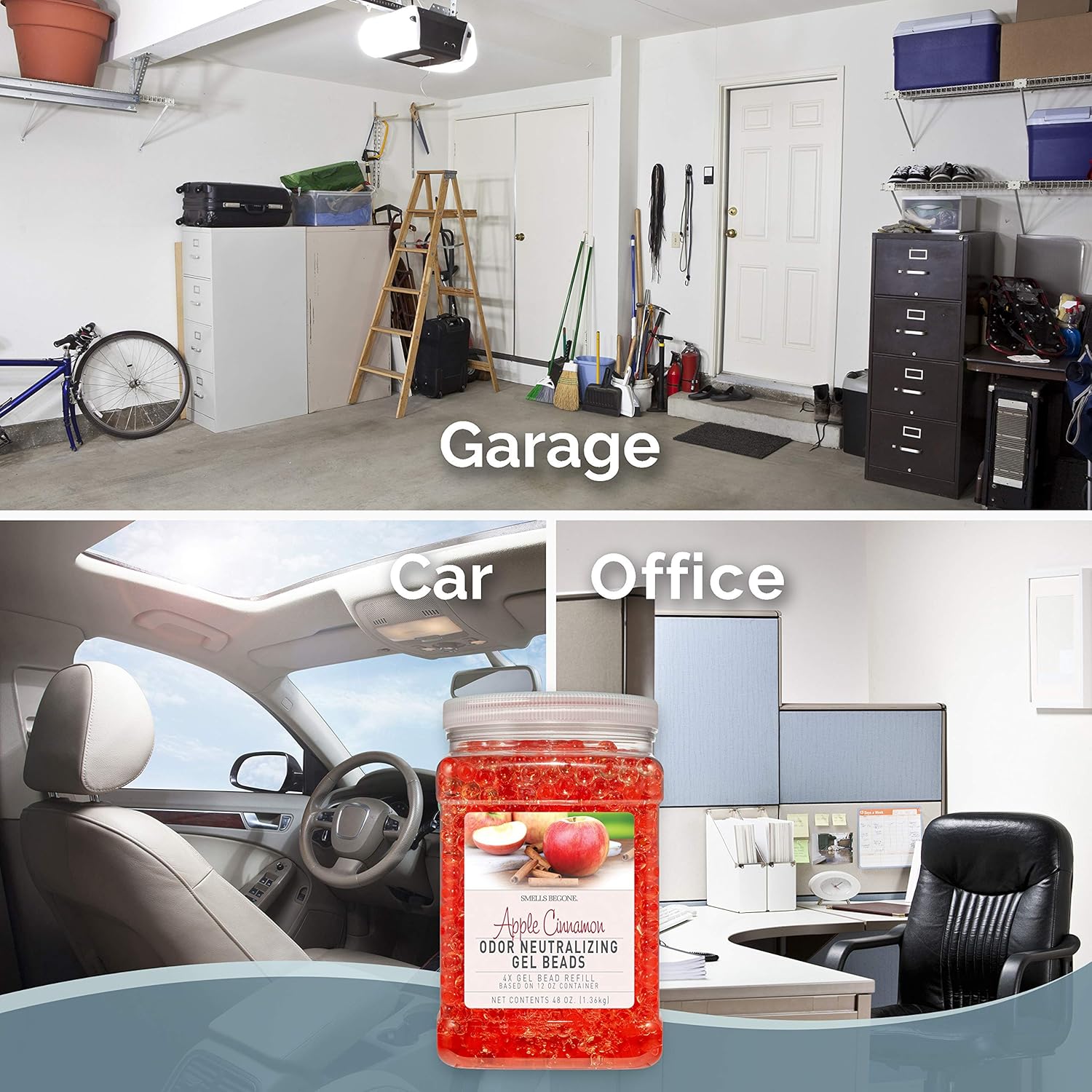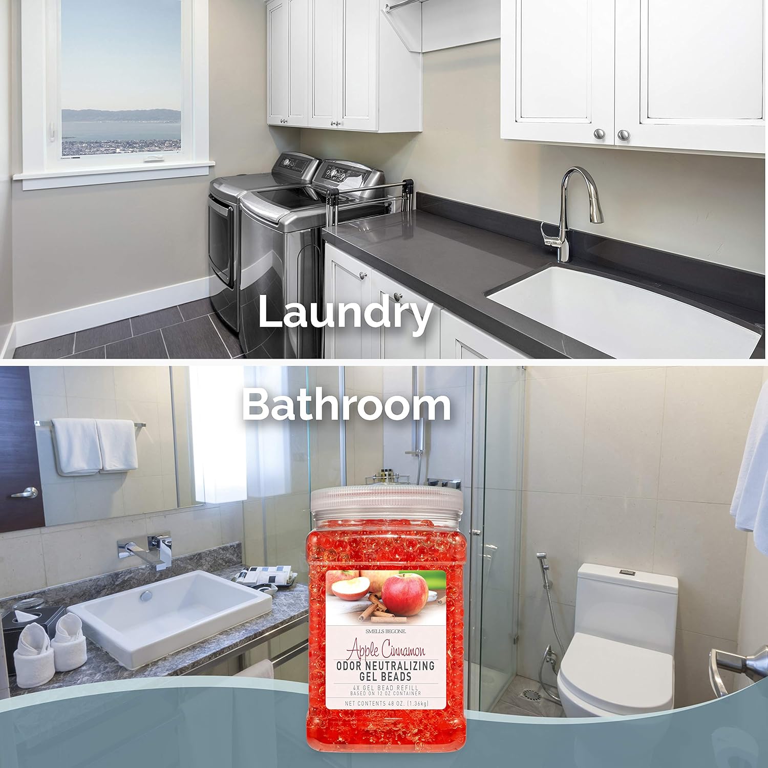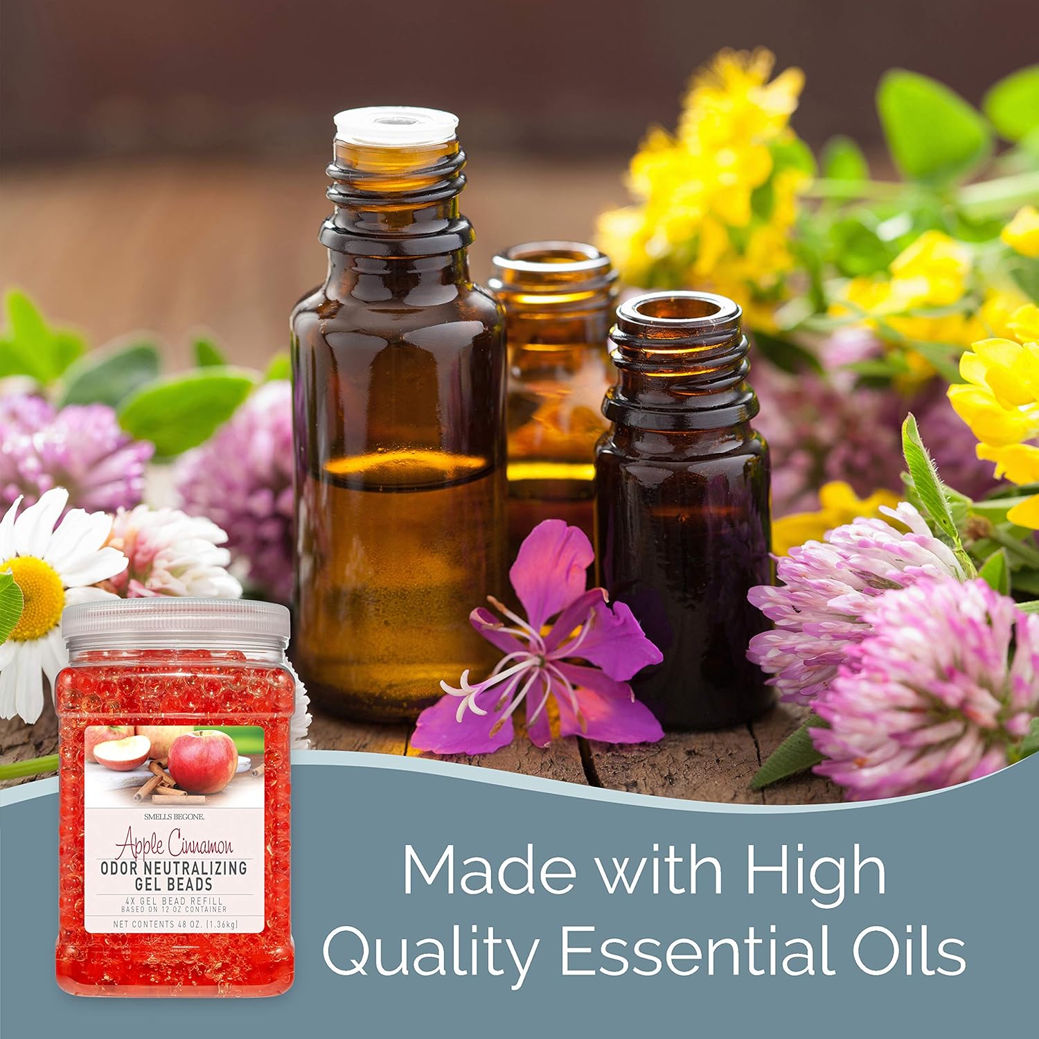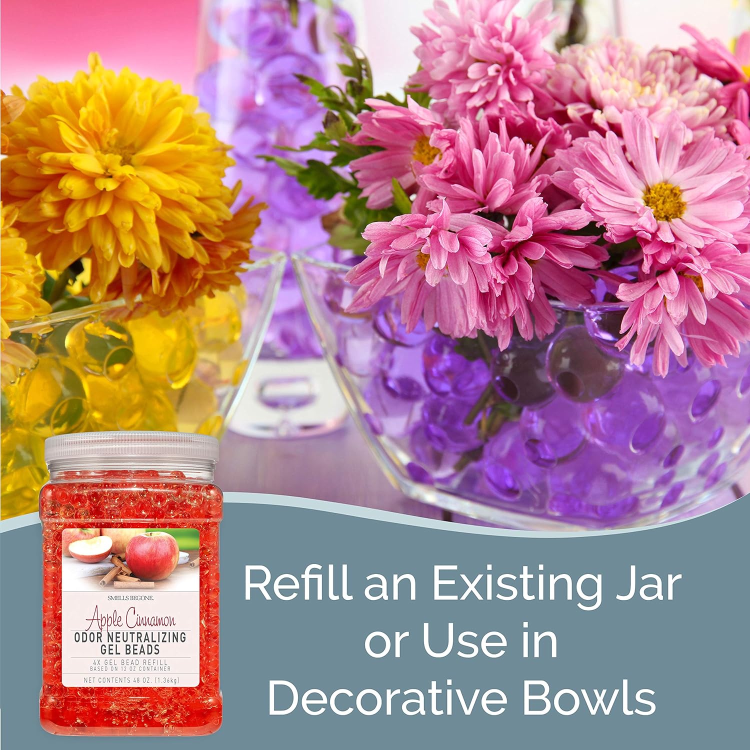 SMELLS BEGONE 48 oz Odor Eliminator Gel Bead Refill - Eliminates Odors from Bathrooms, Cars, Boats, RVs & Pet Areas - Air Freshener - Made with Essential Oils - Apple Cinnamon Scent