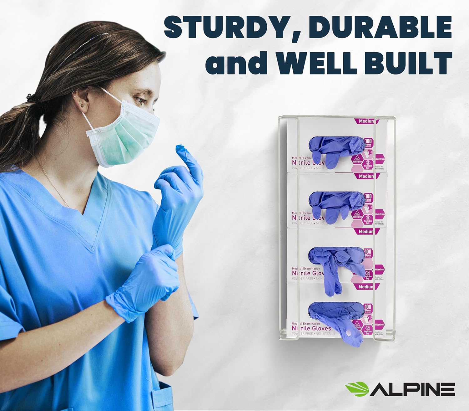 - COLOR OPTIONS. Accommodating two boxes of gloves, the Alpine Industries Dispenser is universally designed to fit most glove brands of medium size. The modern style dispenser is available in a white or black finish to appeal to everyone’s taste.