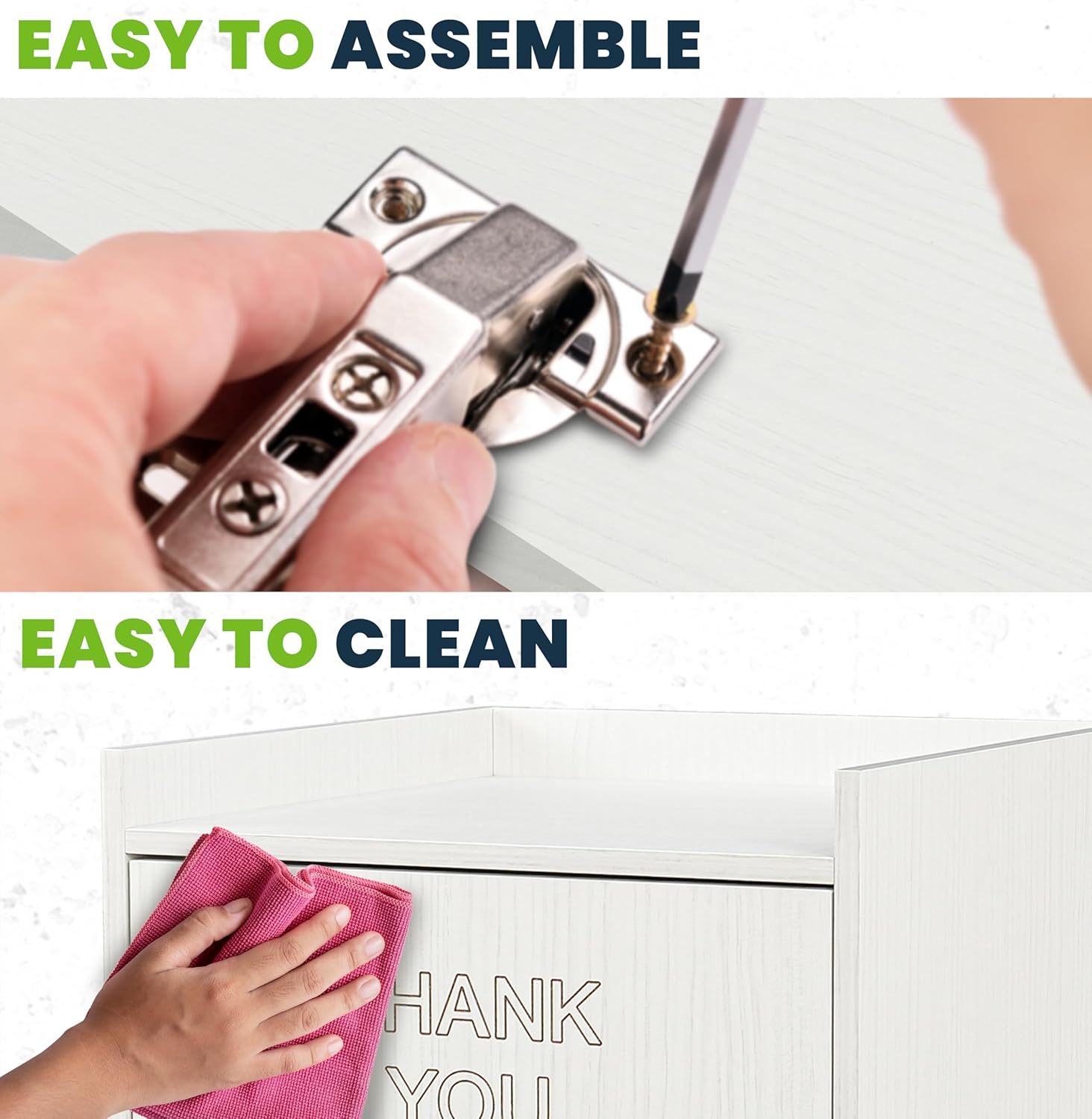 Alpine Restaurant Trash Can Cabinet with Tray Holder - Commercial 40 Gallon Garbage Receptacle Indoor for Restaurants, Cafeterias (White)