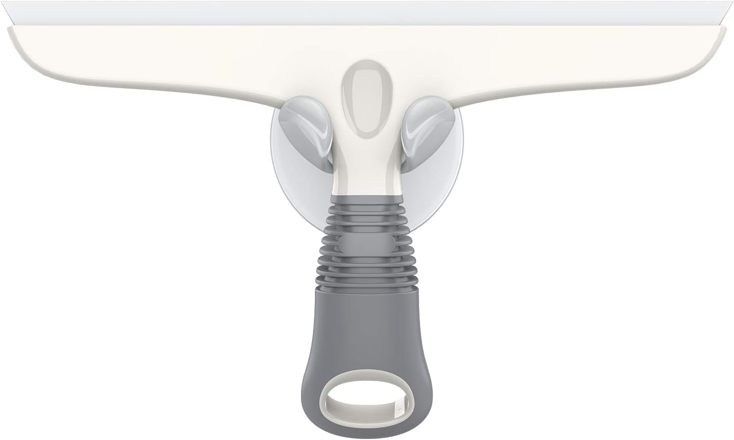 MR.SIGA Multi-Purpose Silicon Squeegee for Window, Glass, Shower Door, Car Windshield, Heavy Duty Window Scrubber, Includes Suction Hook, 10 inch, White & Gray, 1 Pack