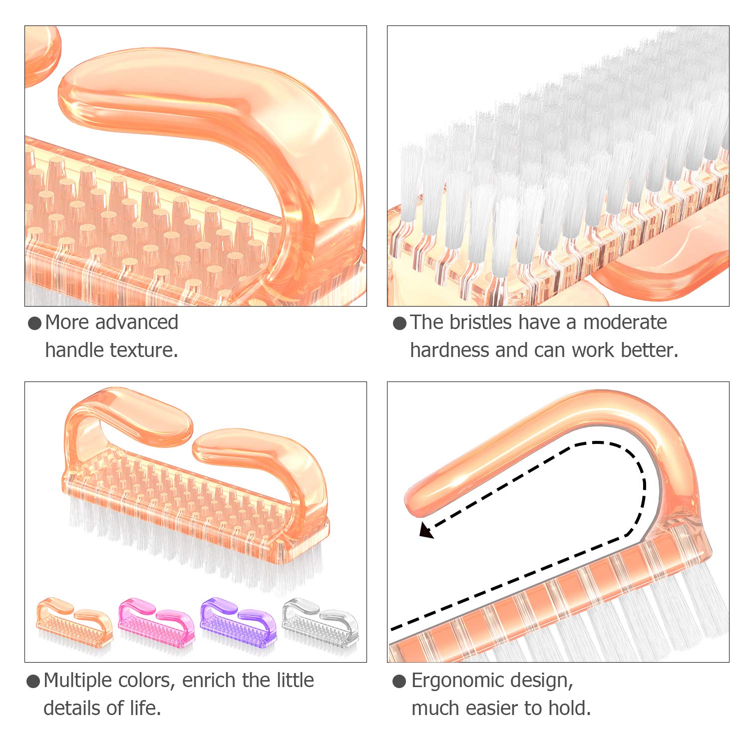 - 【High Quality Material】: These nail brushes' handles are made of sturdy plastic which are not easy to bent. The bristles are made of flexible plastic, not too hard and not too soft which won't scratch your skin. Sturdy for long-term to use.
