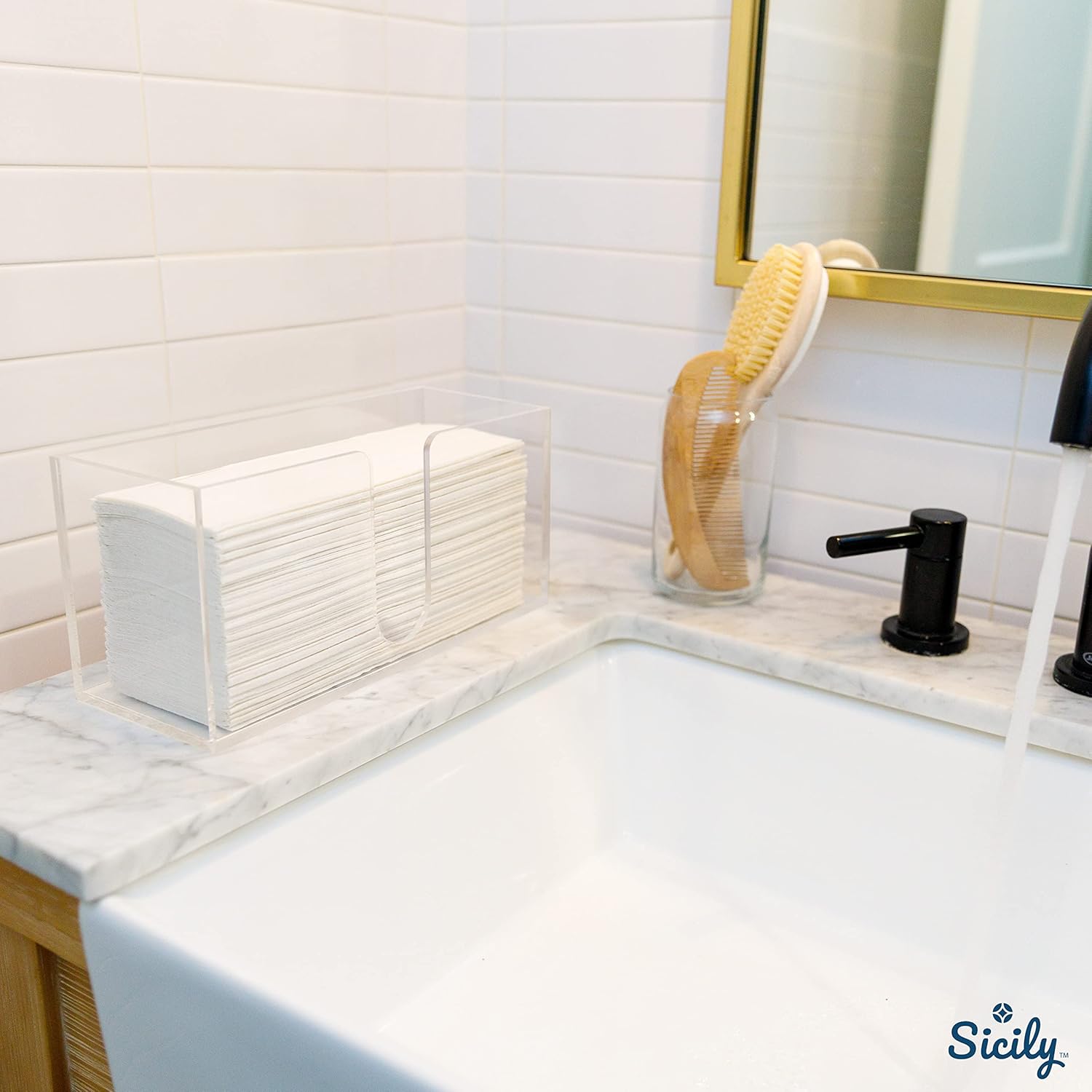 - ENCOURAGE GOOD HYGIENE among house guests or employees at your restaurant with the Sicily Disposable Hand Towel Holder. This Acrylic Guest Towel Holder tray for Bathroom and Kitchen presents fresh paper towels conveniently and fashionably. ORGANIZE with a countertop paper towel holder storage to keep areas tidy.