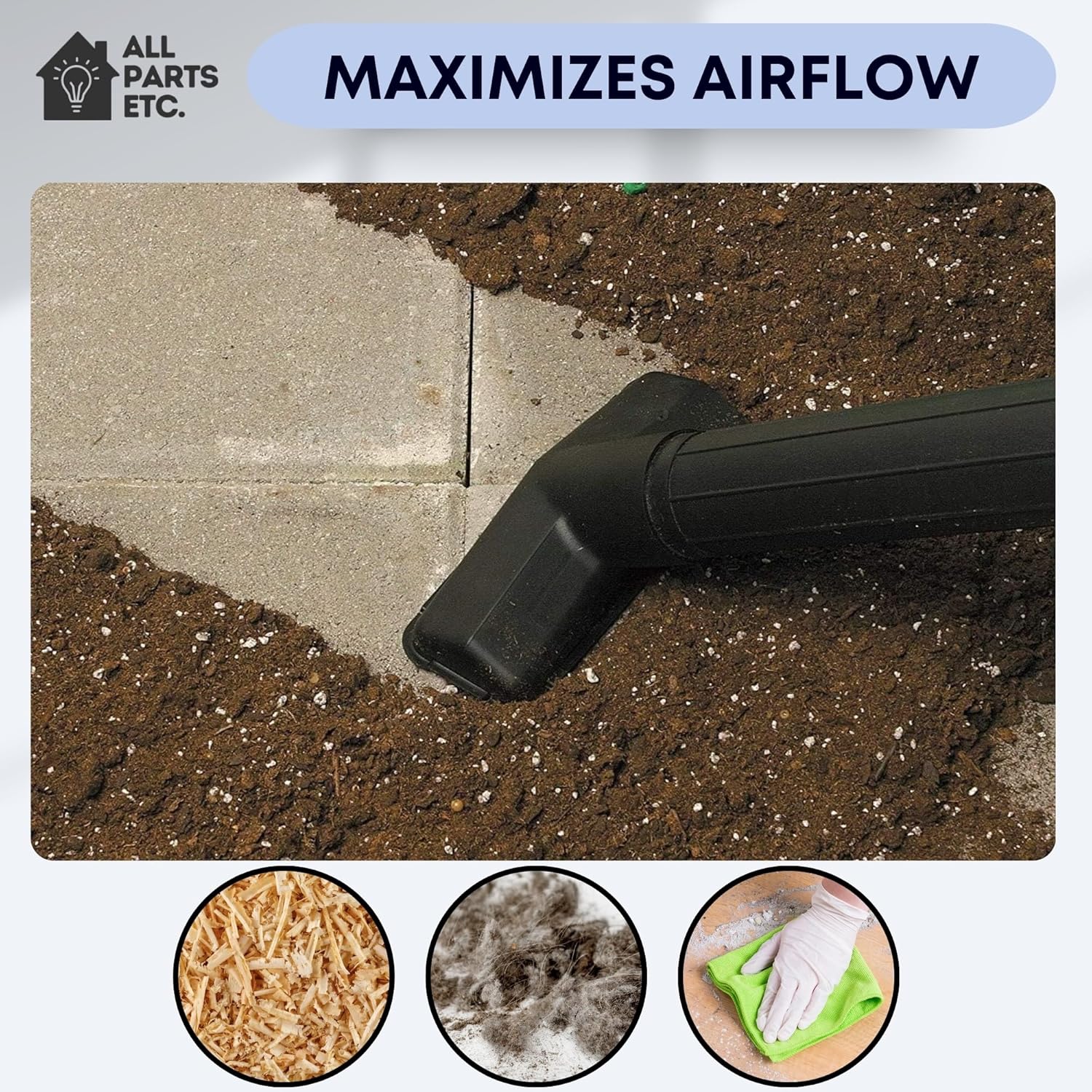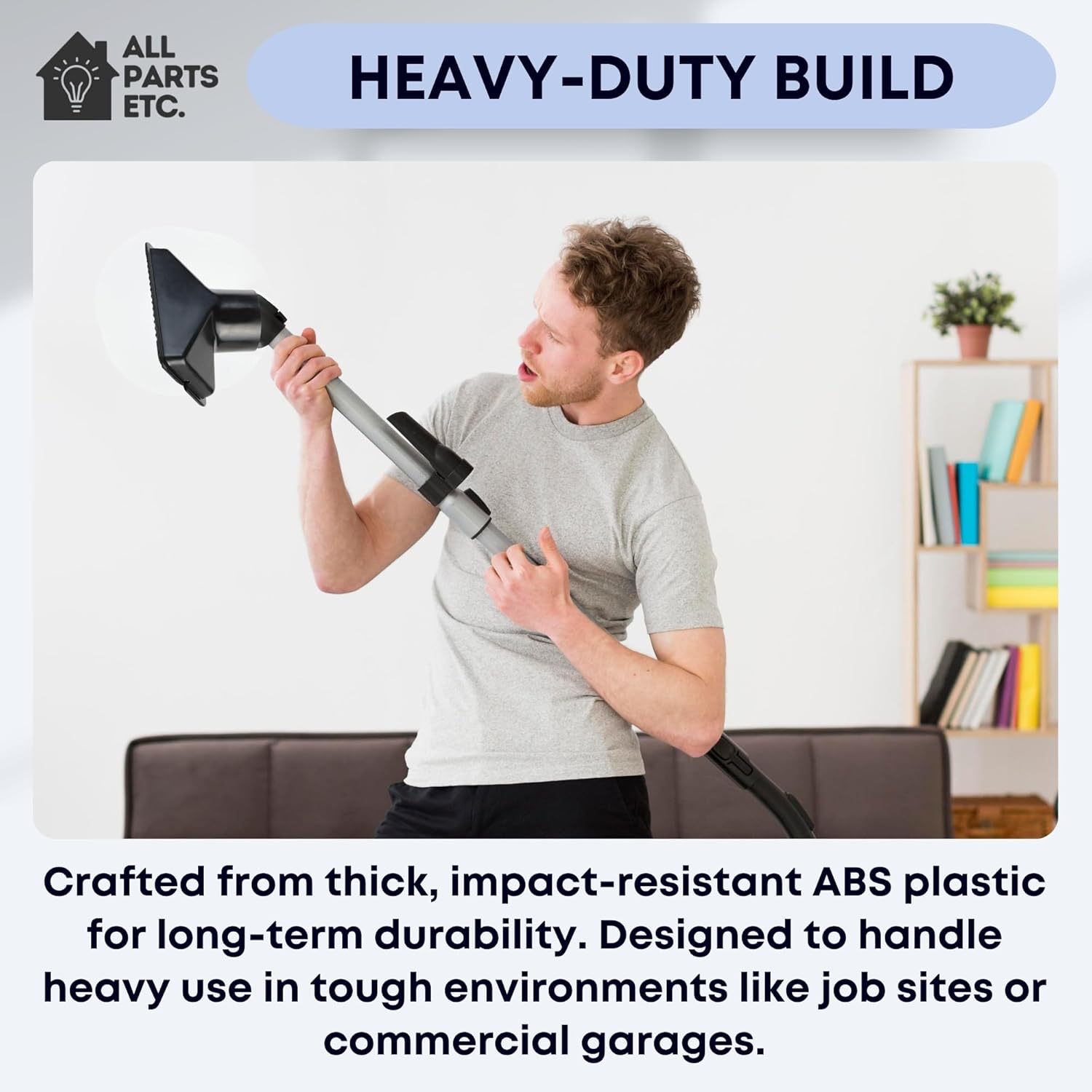 - FITS 2.5” WET/DRY VAC HOSES – This wide utility nozzle connects securely to any 2-1/2" vacuum hose. Compatible with Shop Vac, Ridgid, Craftsman, Vacmaster, and most professional vacuums used in woodshops, construction, and garages.