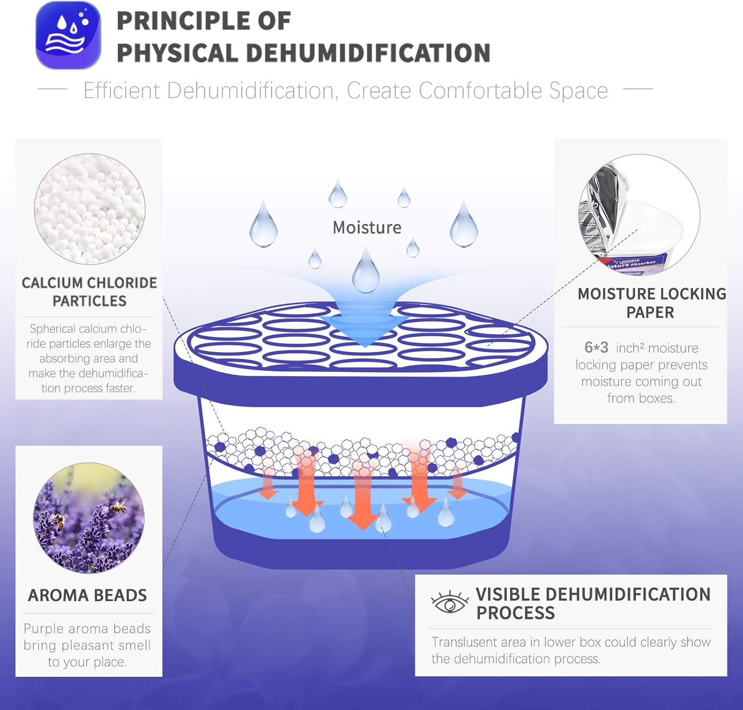 Vacplus Moisture Absorbers 6 Pack, 10.5 Oz Portable Humidity Absorber Boxes for Your Bathroom, Closet & Car, Dehumidifier with Lavender Fragrance, Purple