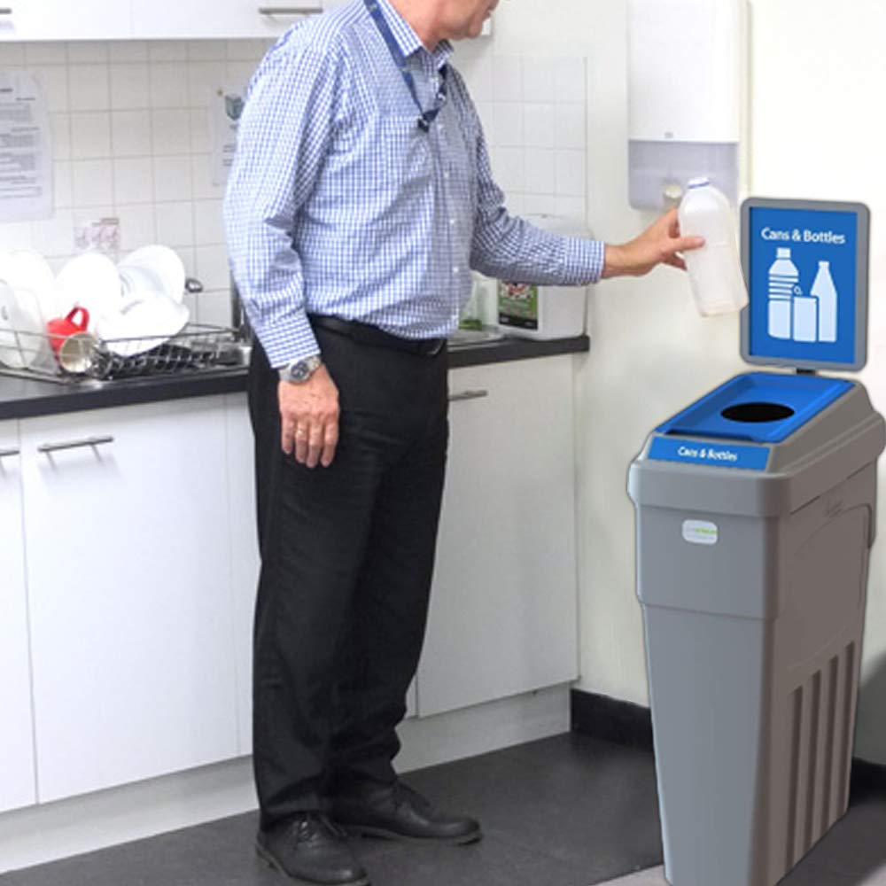 - SMART RECYCLE: Small footprint, high-visibility recycling station that collects compost and keeps your streams clean.Colour-coded top plates and intuitive stream openings make it easy for users to sort their waste quickly and easily