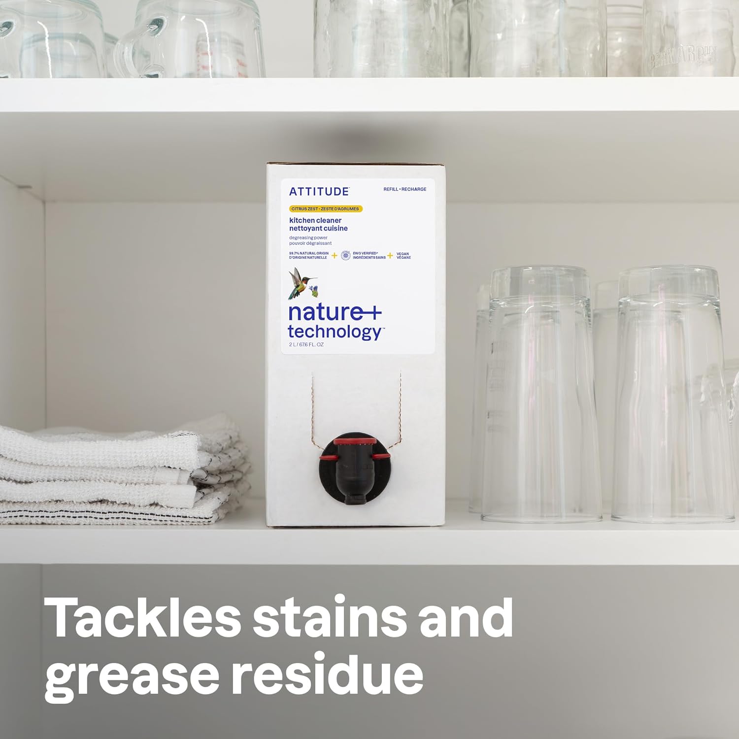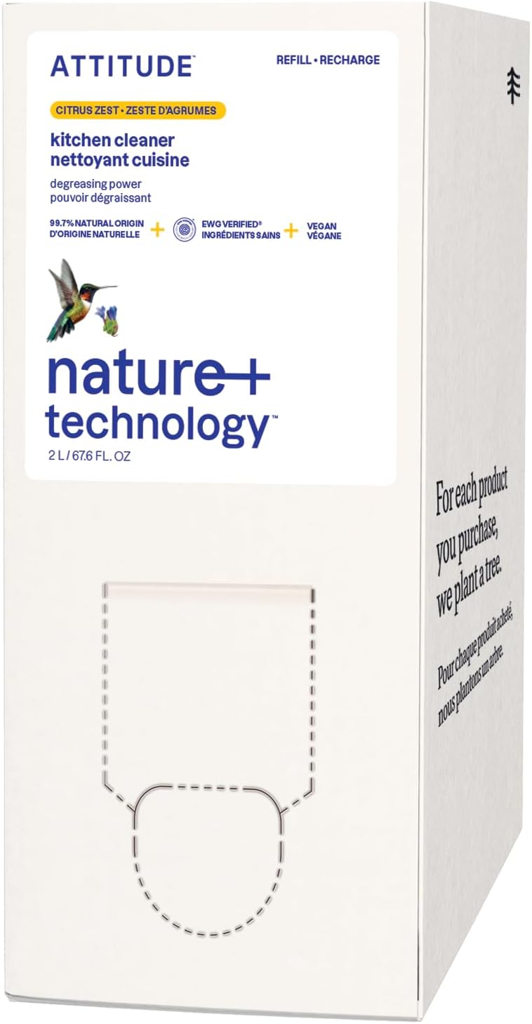 ATTITUDE Kitchen Cleaner Spray Refill, EWG Verified, Powerful Degreaser, Cuts Grease & Grime, Plant-Based & Vegan, Citrus Zest Scent, 67.6 Fl Oz