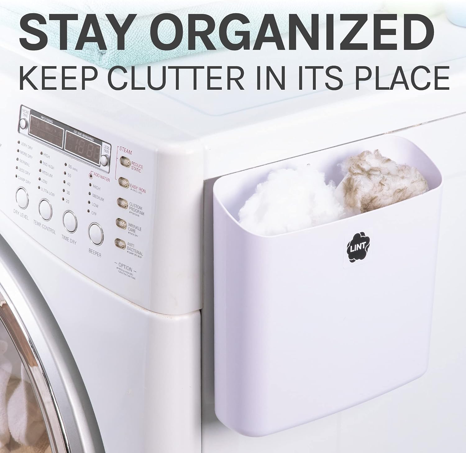 - These space saving multi-purpose bins are not just for lint! Attach it to your washer and use as a receptacle for your washable facemasks or mismatched socks. Load up with office and school supplies for your student and home office. These bins are the perfect spot to collect plastic grocery bags. Plus, you can use a plastic grocery bag in the large bin as a trash liner for lint and dryer sheets. Simply pull out, tie up and it's ready for the trash while keeping your lint bin looking clean!