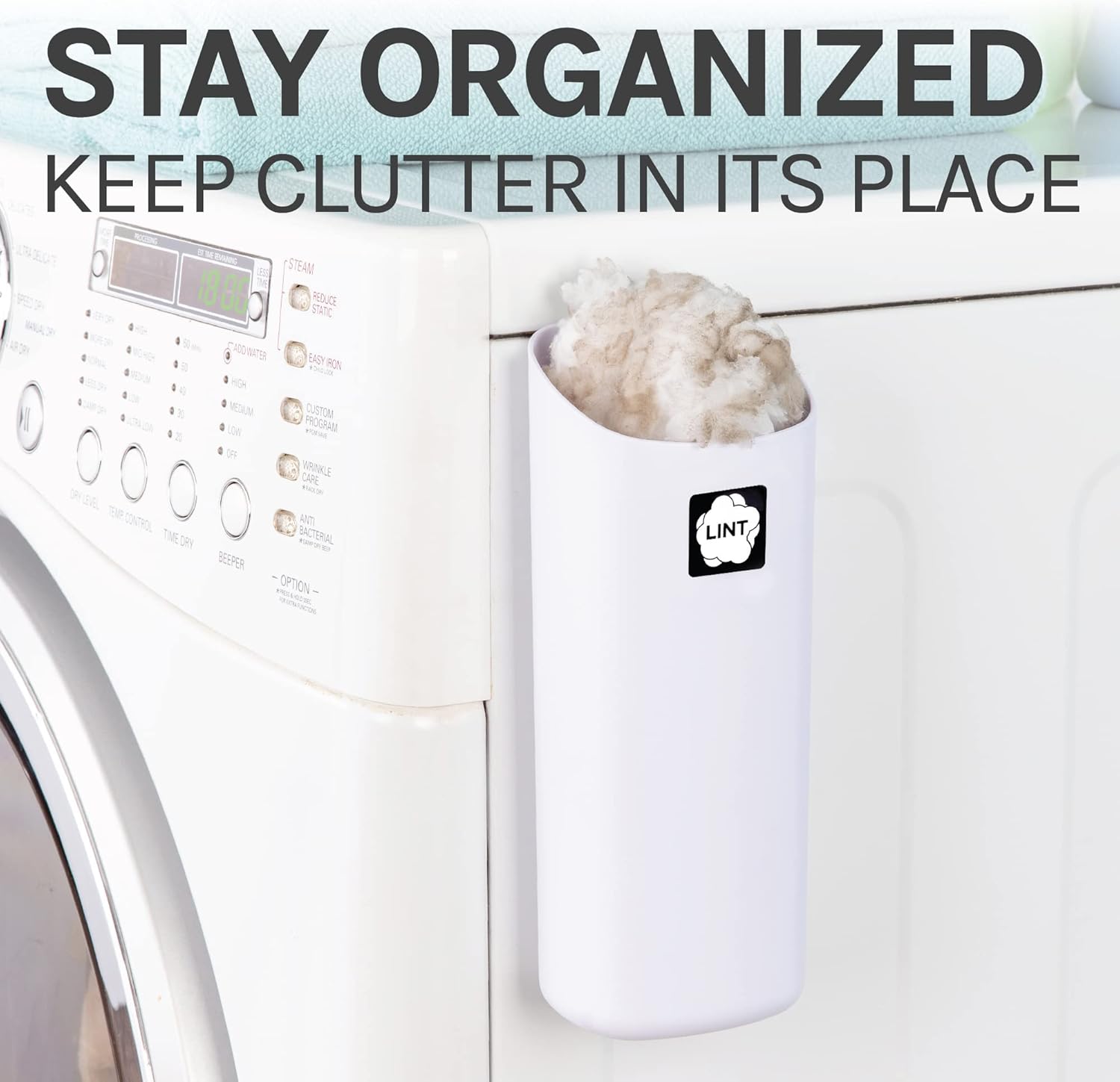 - Stay organized; keep your laundry room spick and span with the JS Jackson Supplies magnetic lint bin; banish lint, used dryer sheets, and other clutter while saving floor space