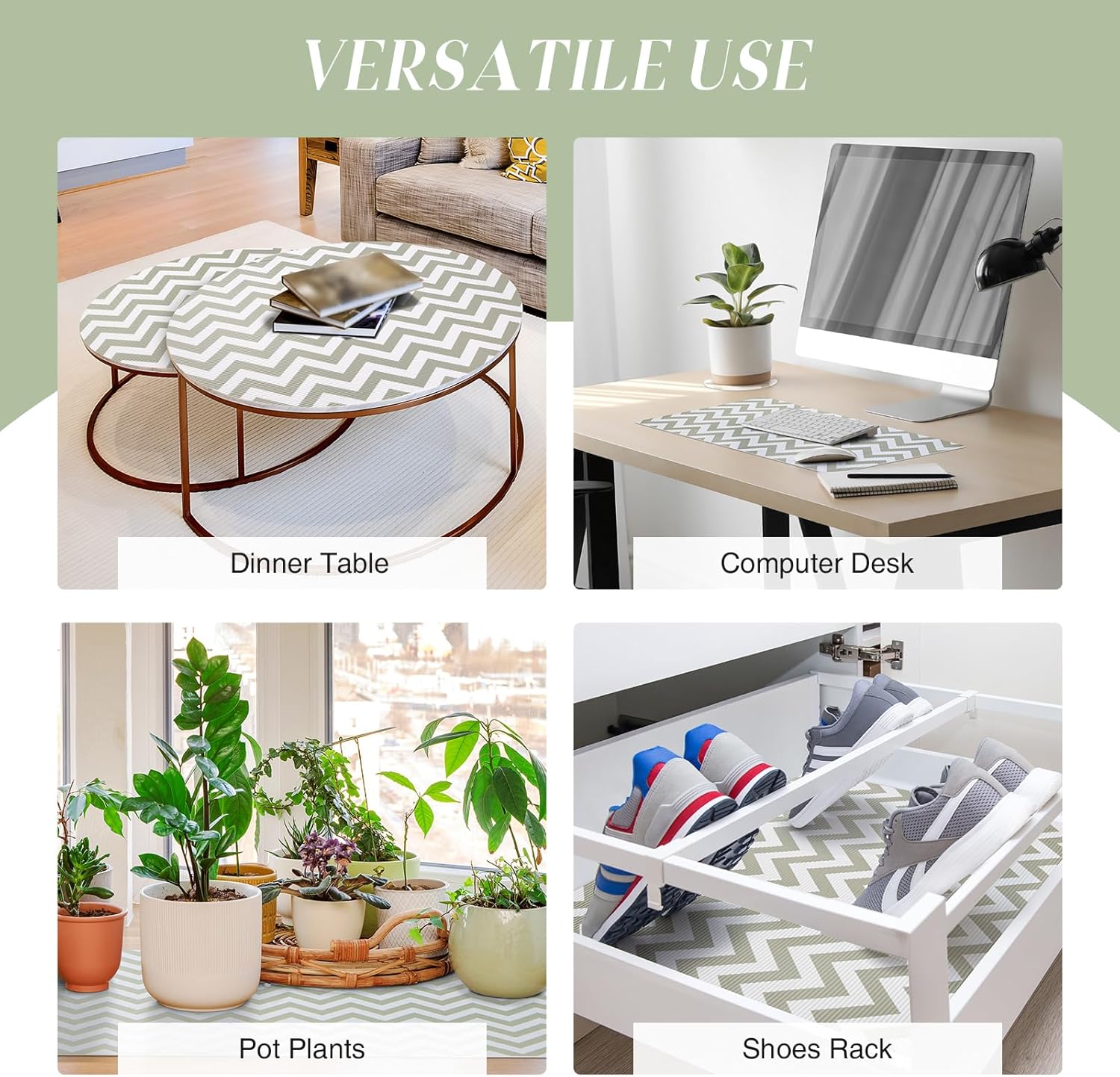 Glotoch Shelf Liner 12" x 20FT Non Adhesive Refrigerator, Kitchen, Drawer Liners, Waterproof and Durable Fridge Table Place Mats for Cupboard, Cabinet, Drawer Liner, Gray and White, Chevron