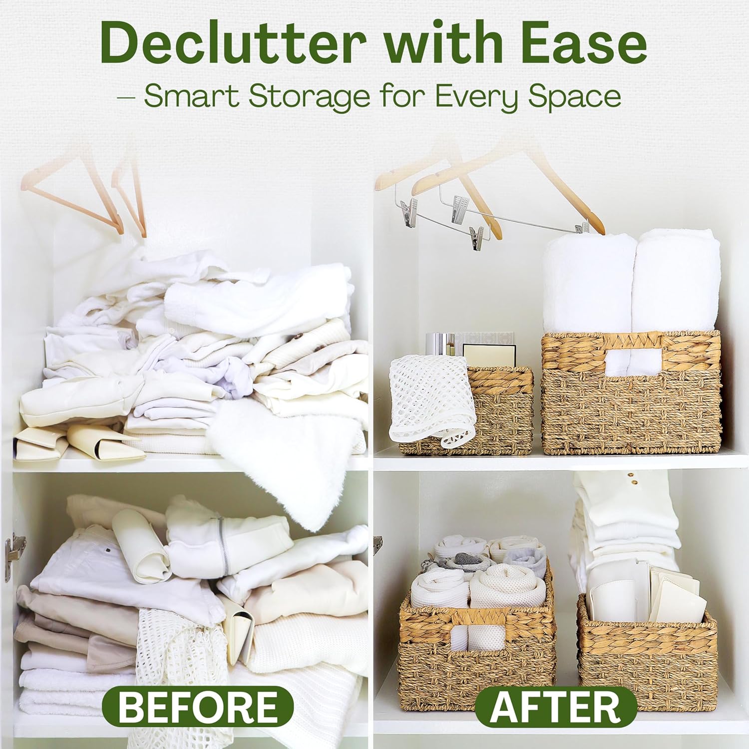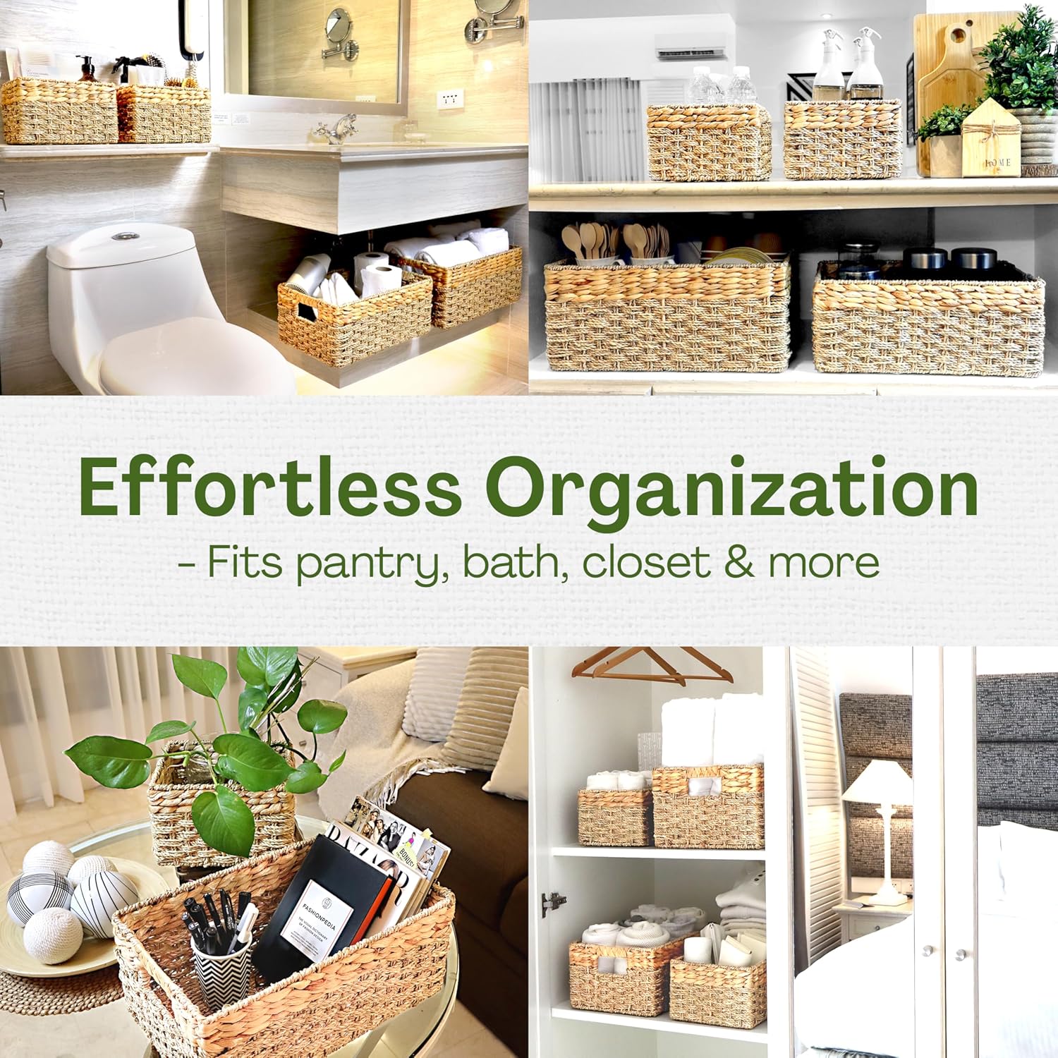 - NATURALLY SAFE AND BEAUTIFUL - Bring warmth and charm with decorative storage baskets, natural seagrass and hyacinth, chemical-free and eco-friendly. The rectangle basket boasts a smooth, woven finish, ensuring lasting beauty without fraying or sharp edges.
