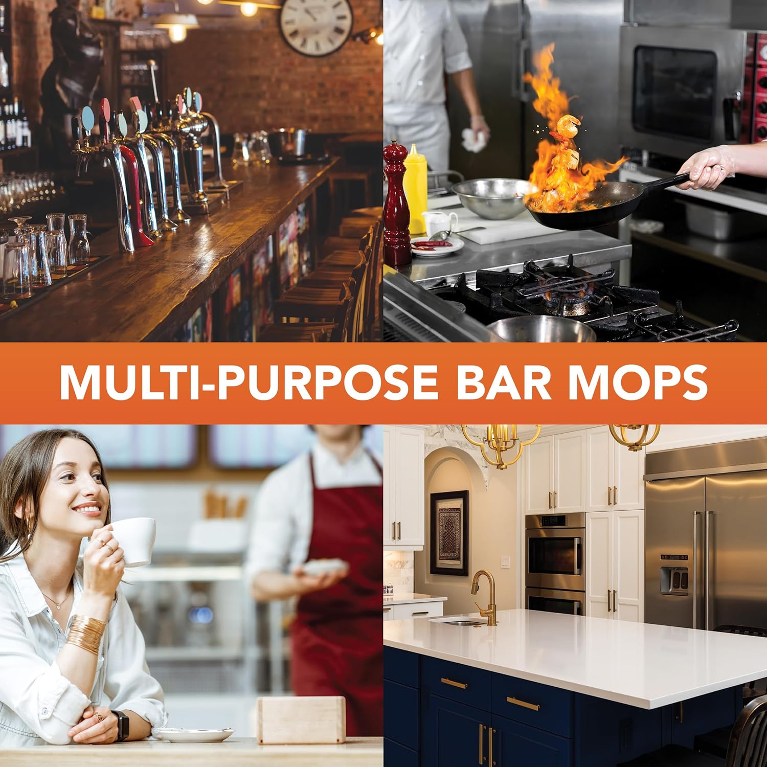 - MULTI-PURPOSE BAR MOPS: These terry bar mop dish cleaning towels are suited for every situation. A heavy-duty tea towel for the home, a dish towel for hotels, a cleanup towel for bars, cleanup cloth for restaurants, etc. They get the job done when drying dishes and glasses.