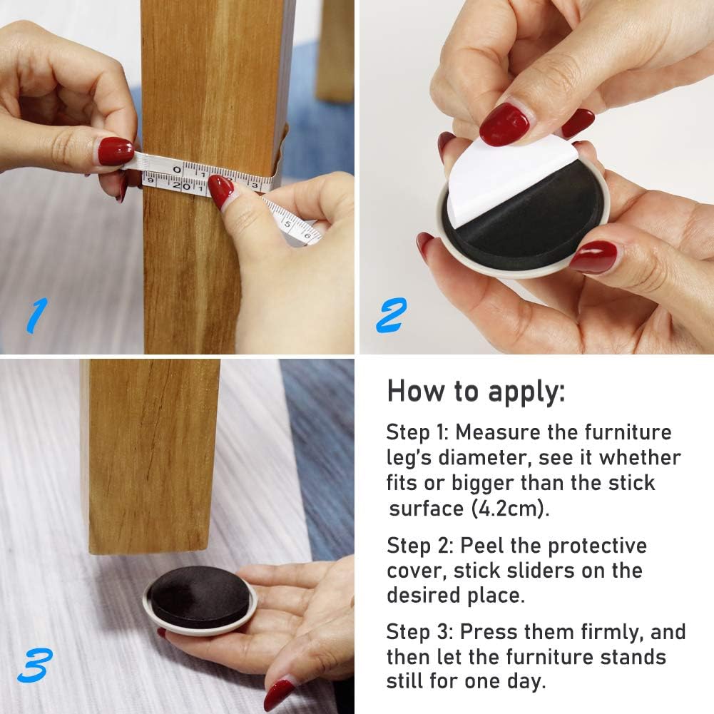 - ★WIDE APPLICATION - With strong adhesion, the furniture glides can be easily stick to wood, glass, metal, plastics, widely used on dining table, desk, chairs and other furniture legs fit the size