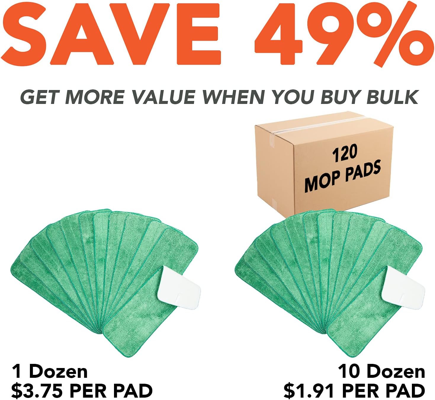 Arkwright Spray Mop Replacement Pads - (Case of 120) Bulk Microfiber Flat Dry and Wet Refill Mop Pads Floor Cleaning, Compatible with Bona and Rubbermaid, Fits All Mop Heads, 18 in, Green